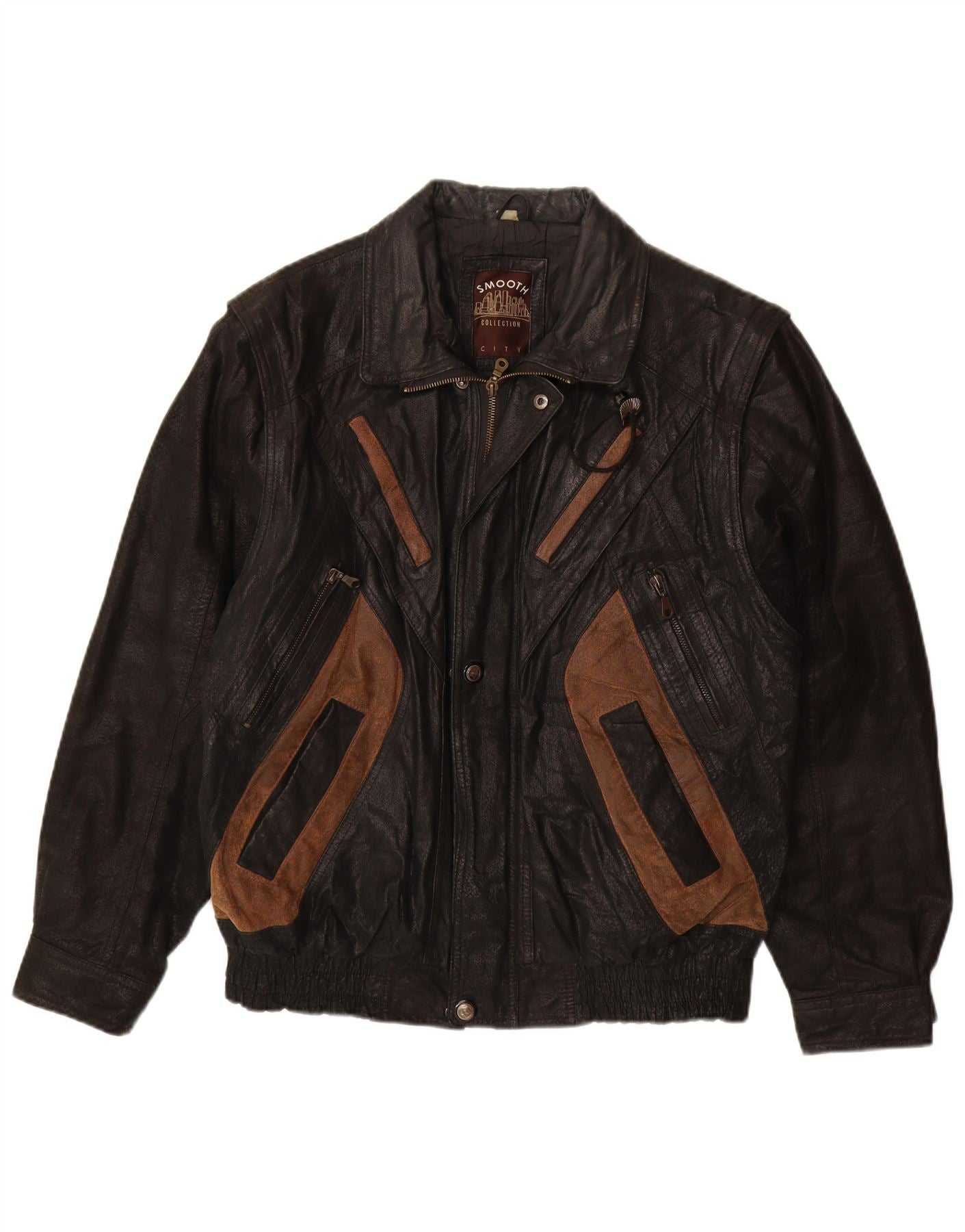 VINTAGE Mens Leather Jacket UK 40 Large Black Colourblock Leather