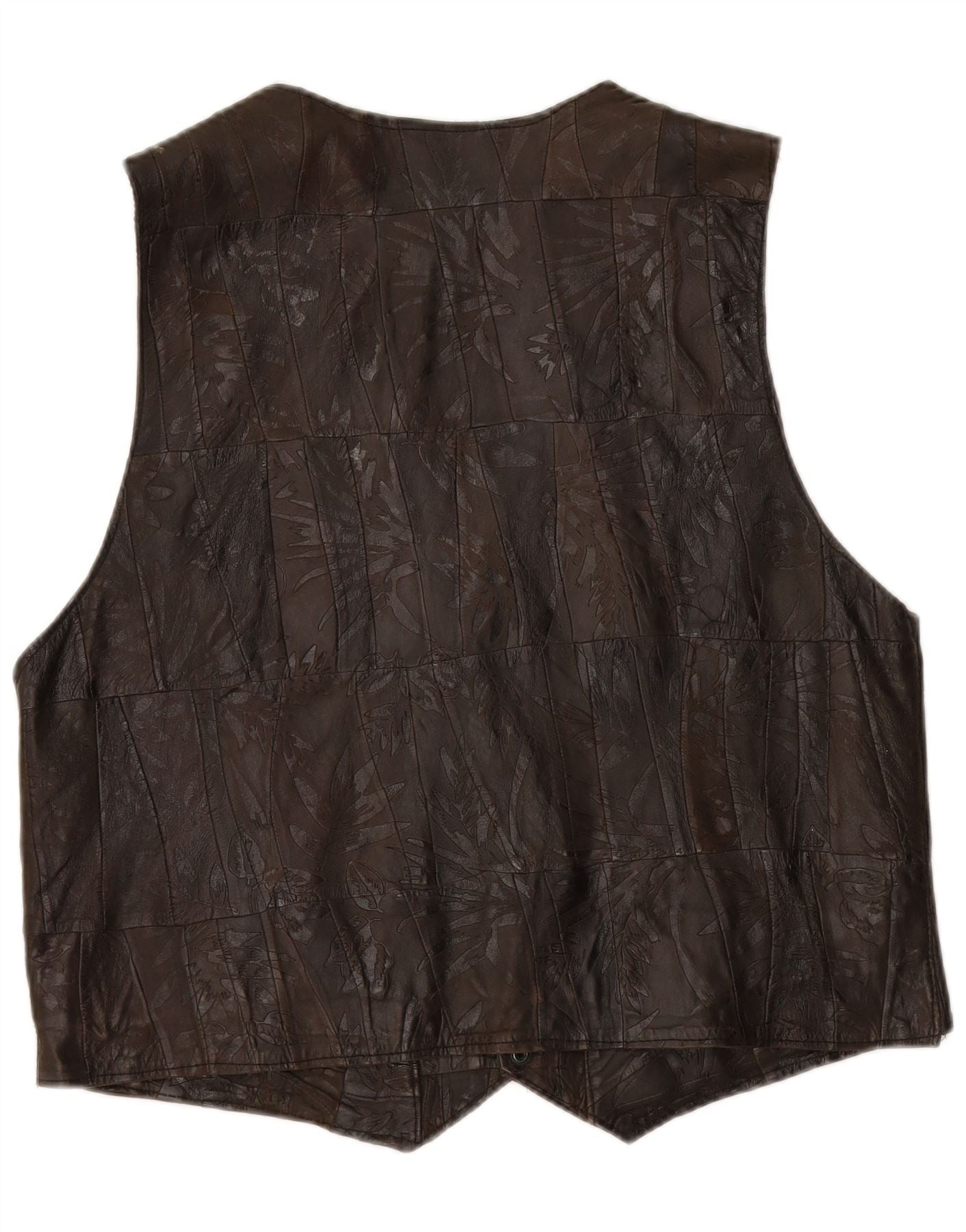 VINTAGE Mens Leather Waistcoat 2XL Brown Patchwork