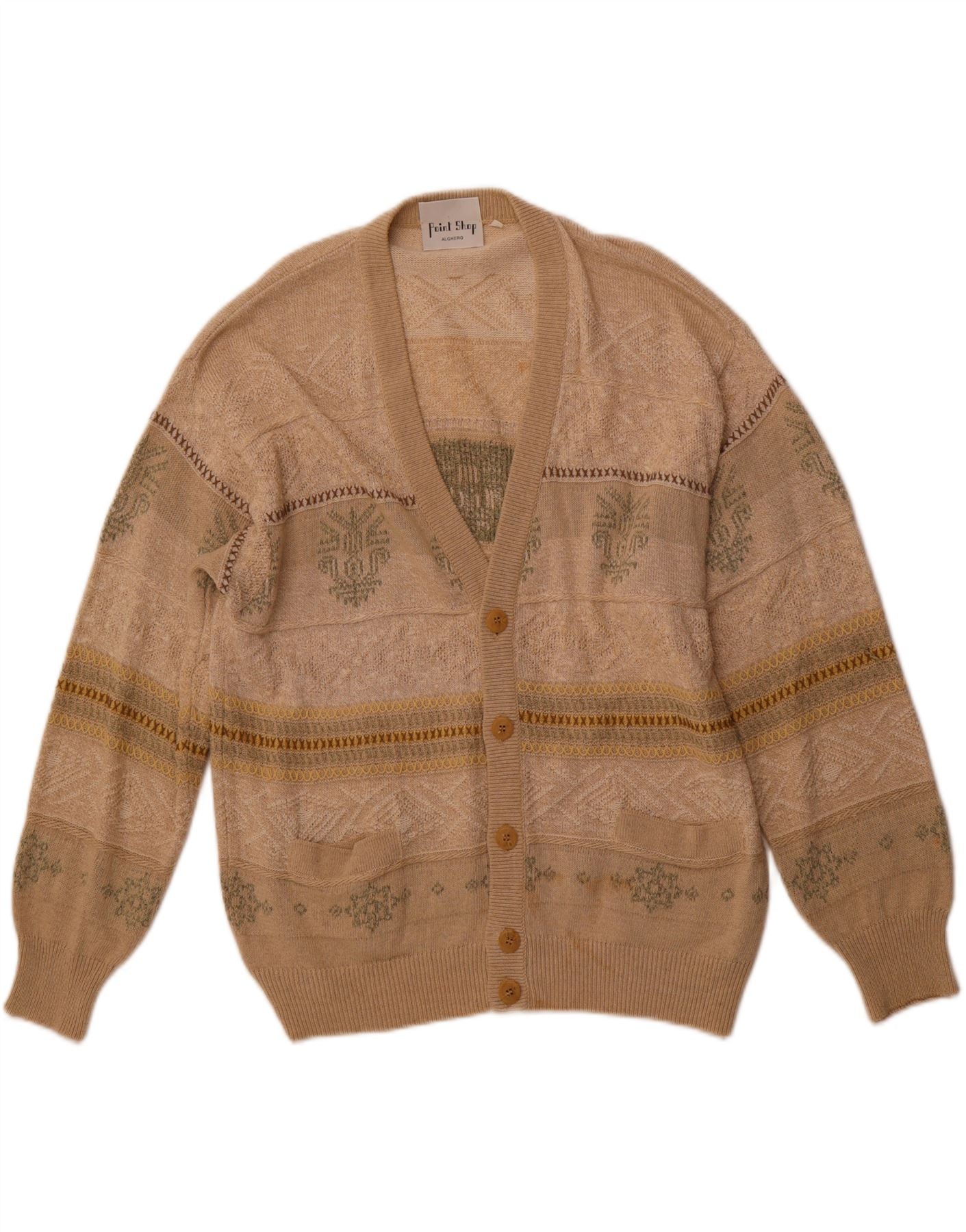 VINTAGE Mens Loose Fit Cardigan Sweater IT 50 Medium Beige Fair Isle Flax