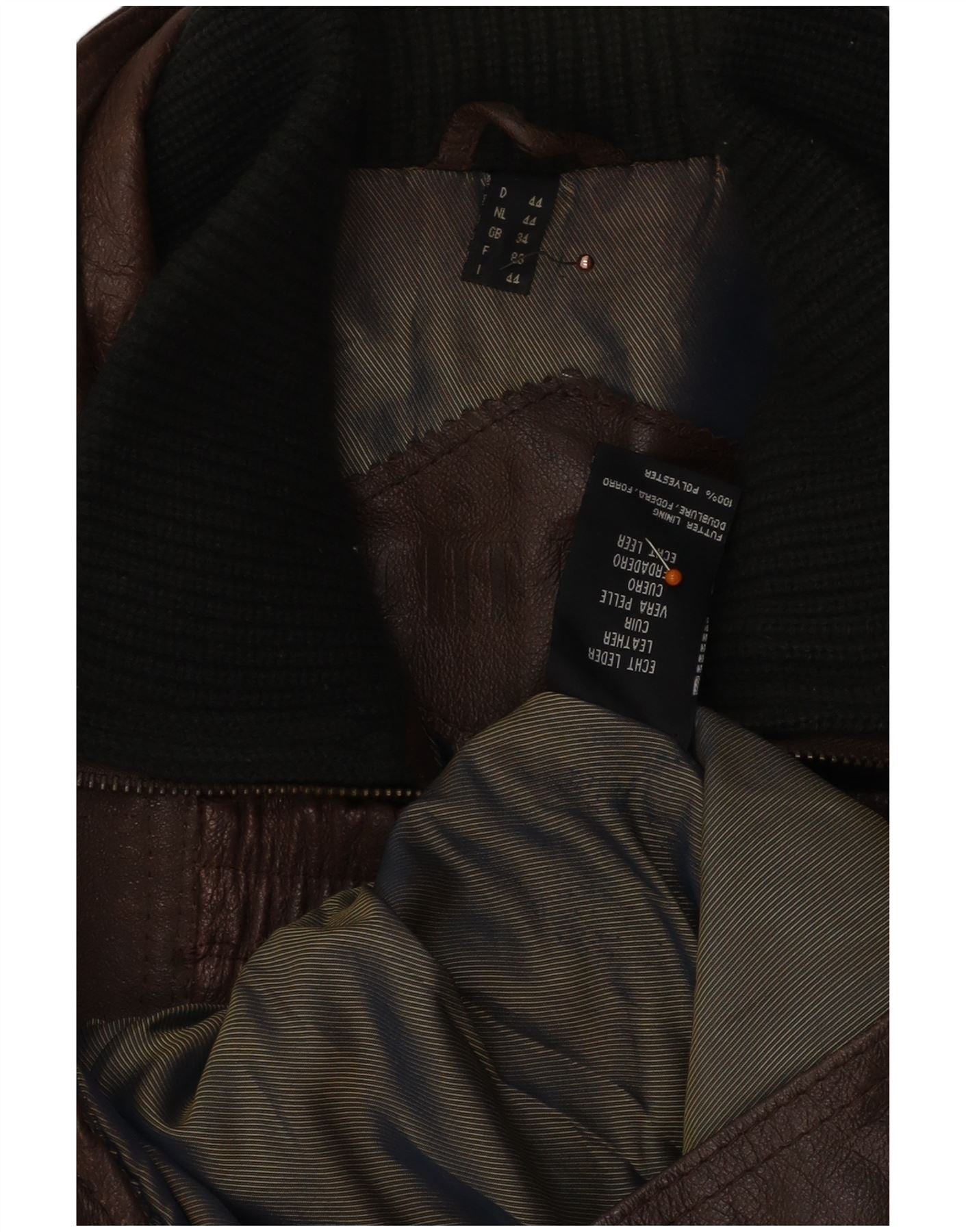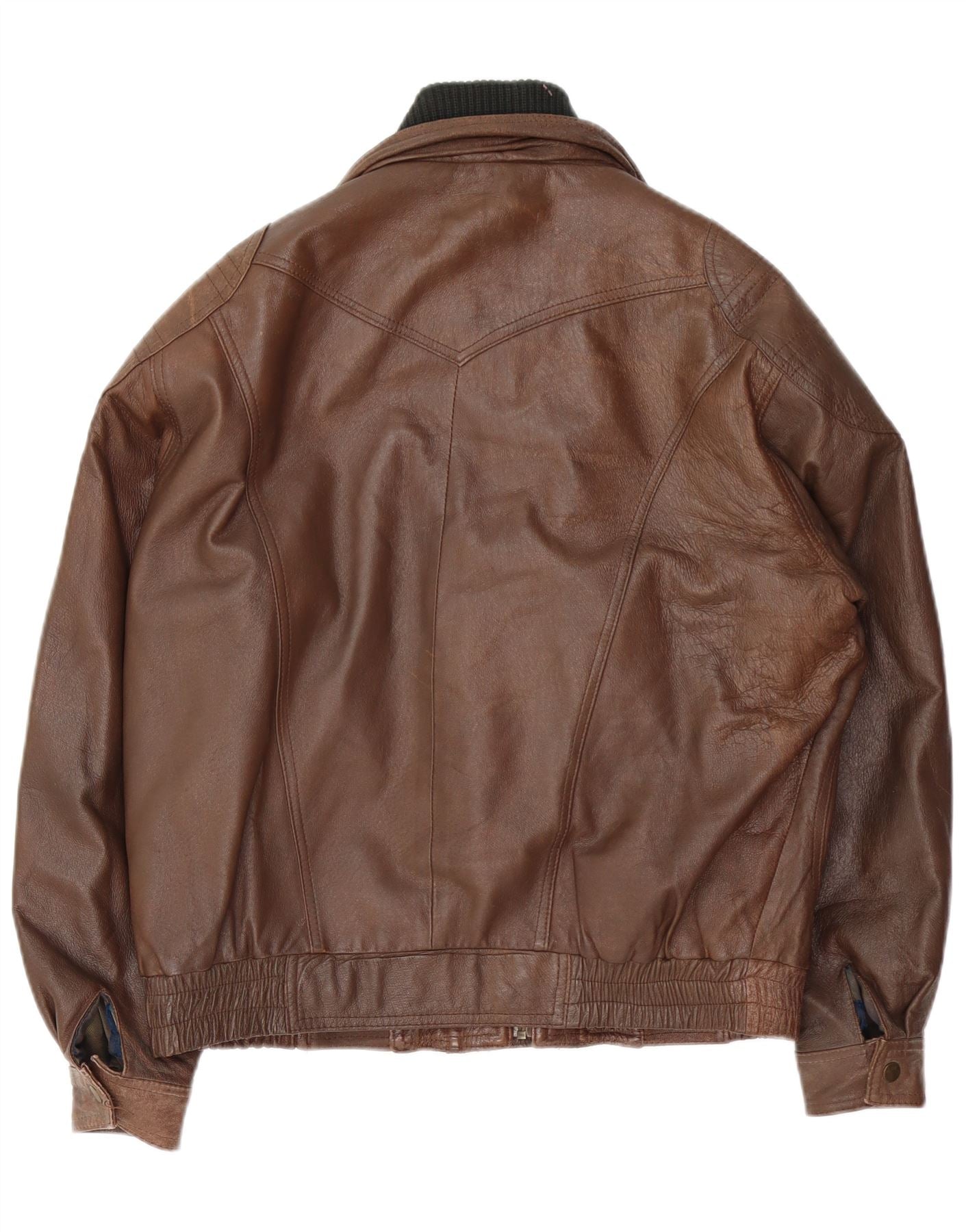 VINTAGE Mens Loose Fit Leather Jacket UK 34 XS Brown Leather