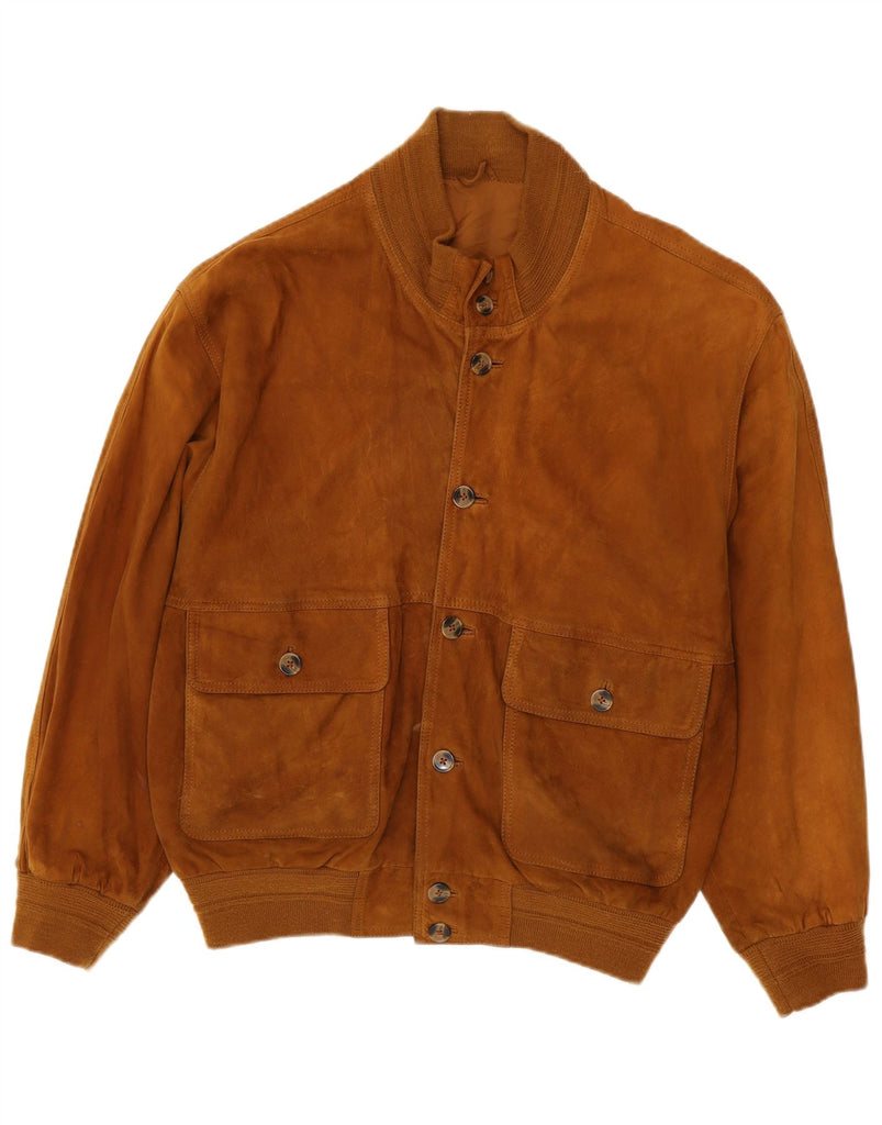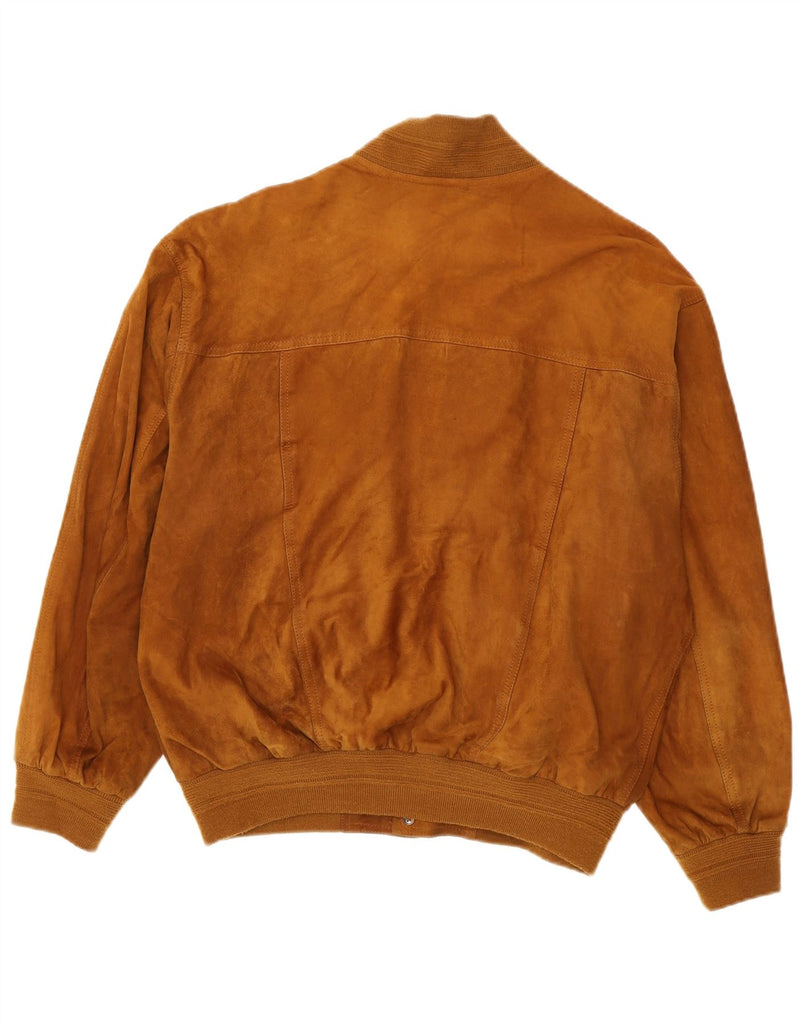 VINTAGE Mens Loose Fit Suede Bomber Jacket IT 48 Medium Brown Leather