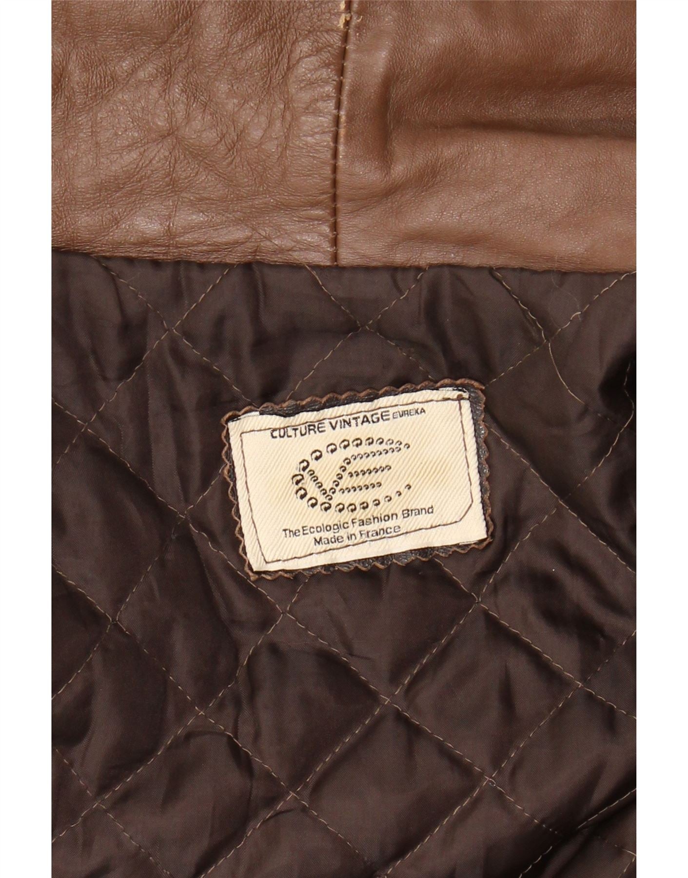 VINTAGE Mens Military Leather Jacket UK 40 Large Brown Leather