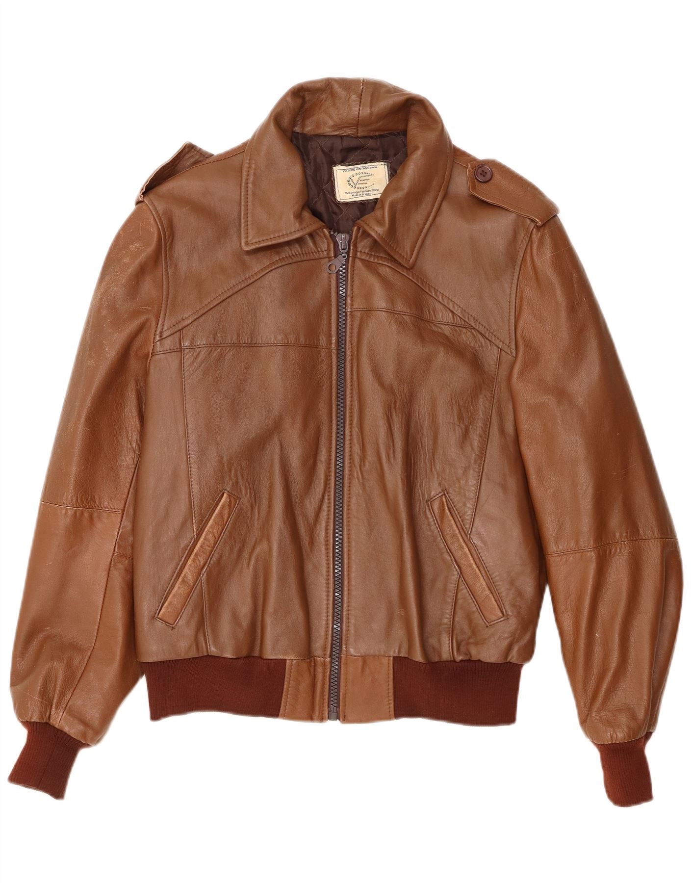 Home > Vintage Leather Jackets > Vintage Brown Leather Jackets > VINTAGE Mens Military Leather Jacket UK 40 Large Brown Leather