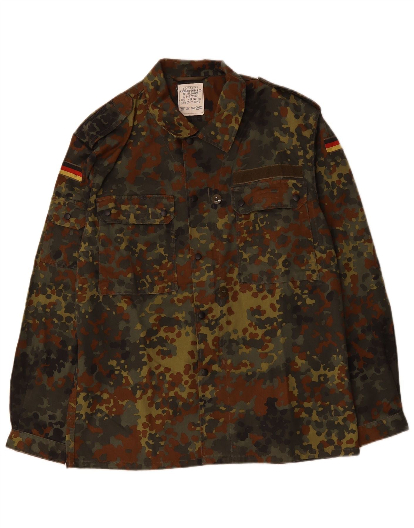 VINTAGE Mens Military Shirt Large Khaki Camouflage Cotton Army