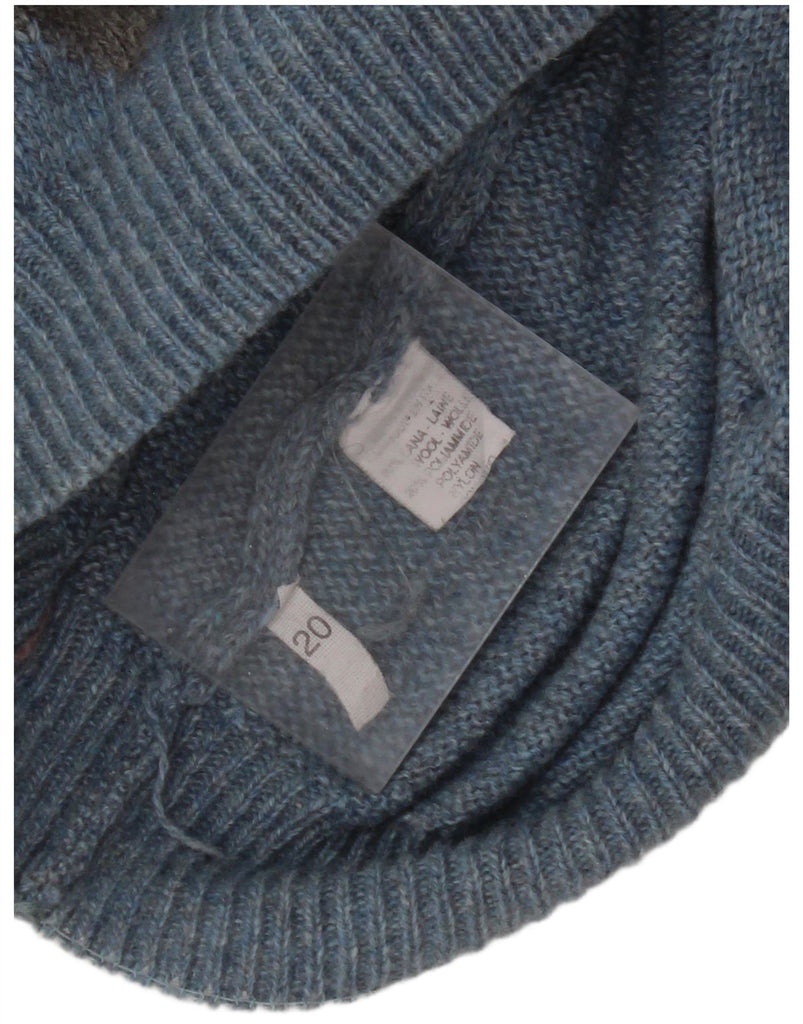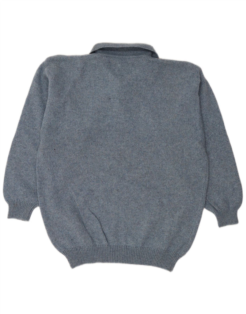 VINTAGE Mens Polo Neck Jumper Sweater Medium Blue Argyle/Diamond Wool