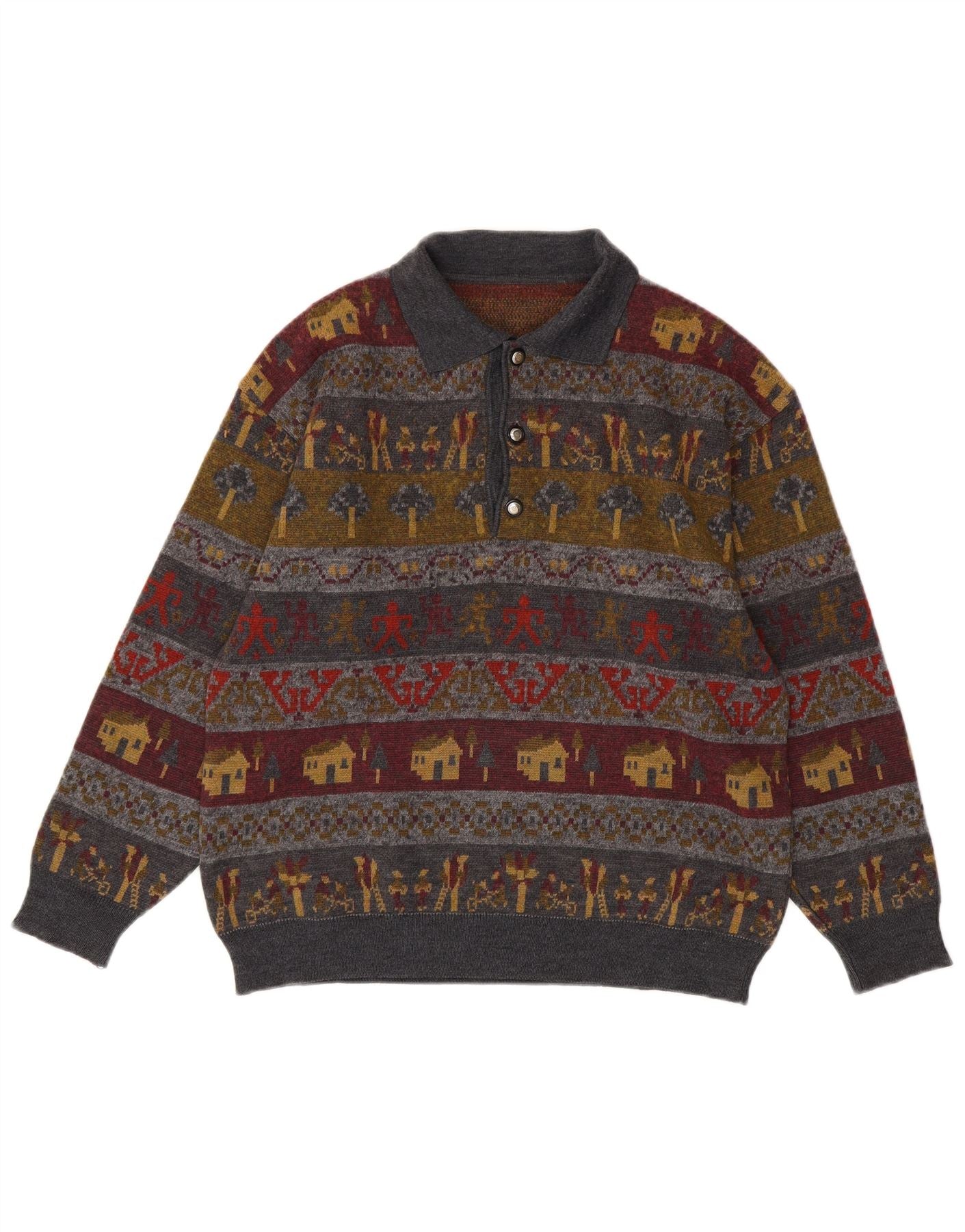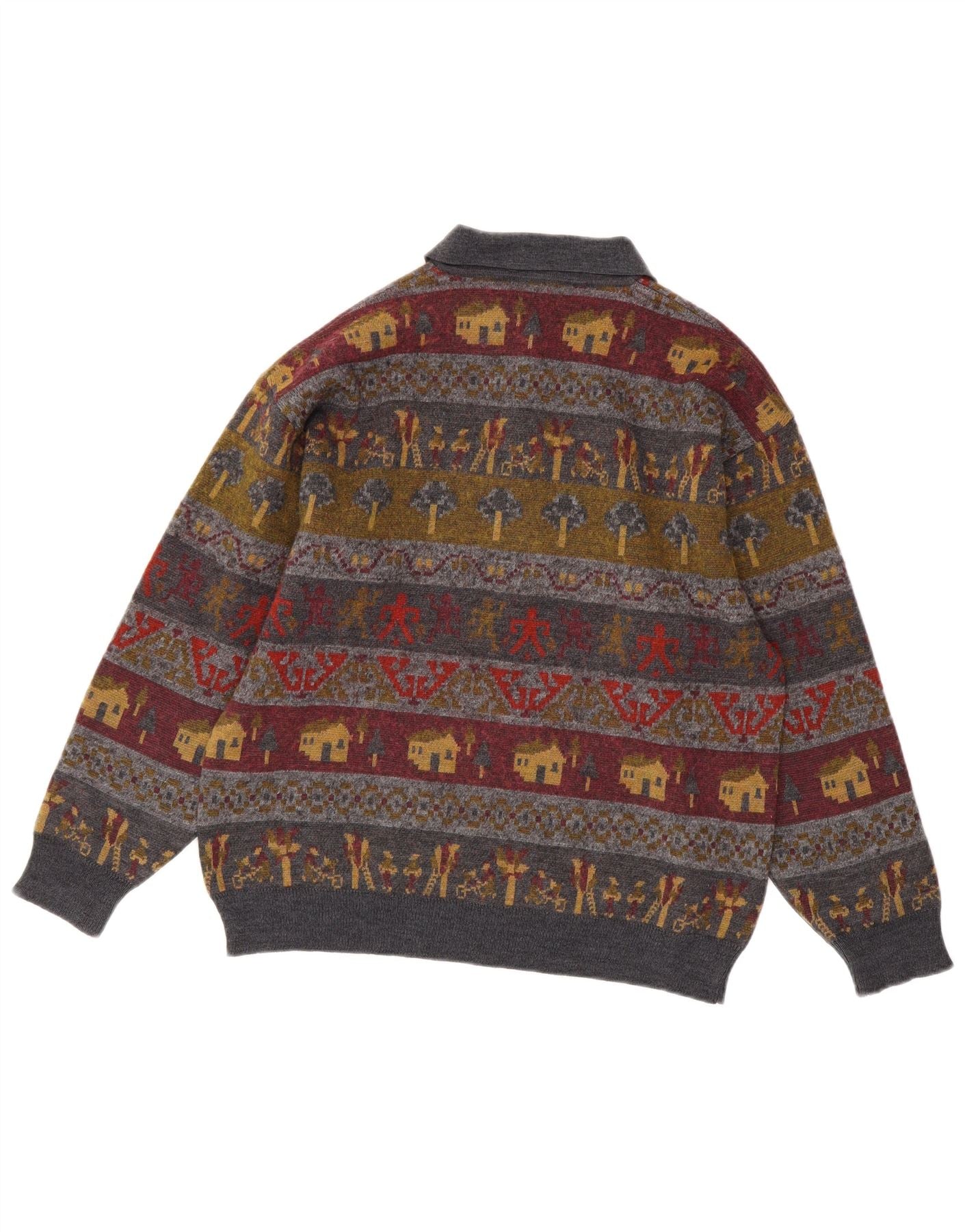 VINTAGE Mens Polo Neck Jumper Sweater Medium Multicoloured Fair Isle
