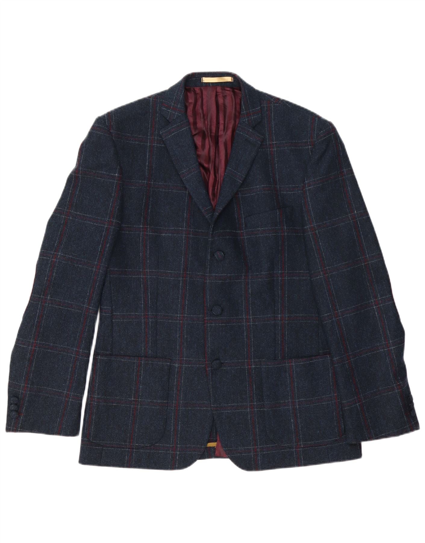 VINTAGE Mens Regular Fit 3 Button Blazer Jacket UK 42 XL Navy Blue Check