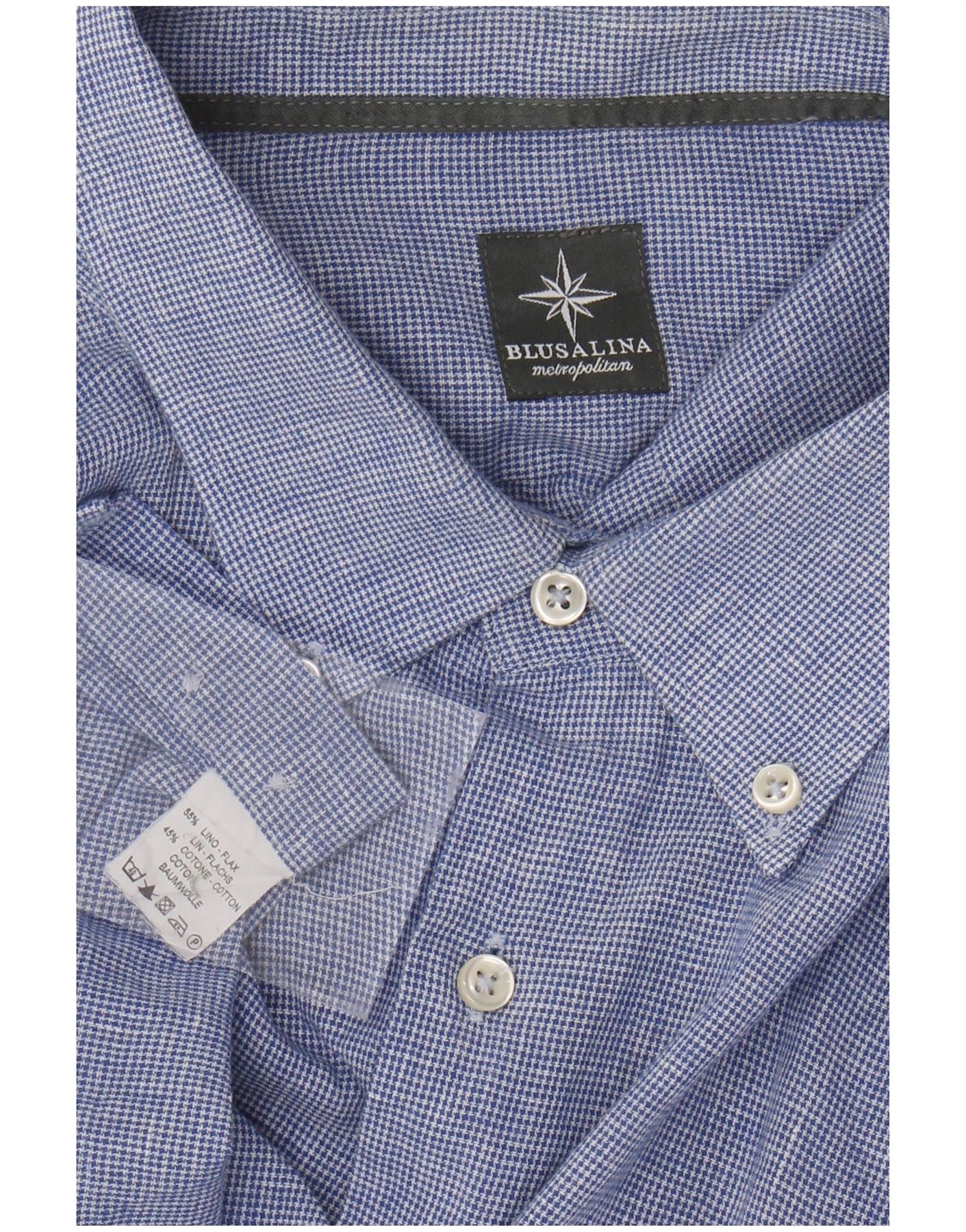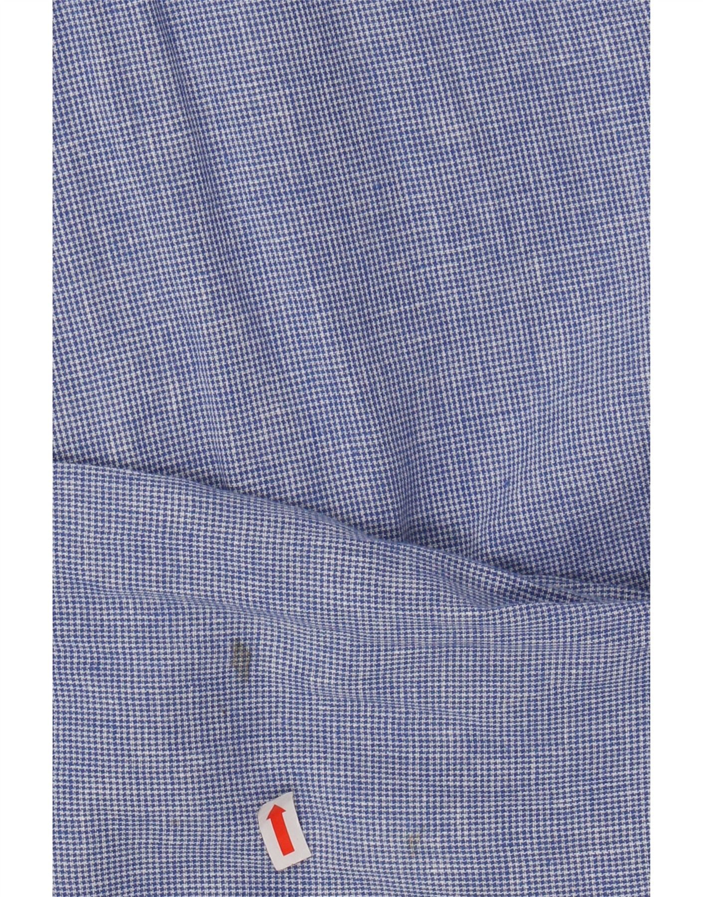 VINTAGE Mens Regular Fit Shirt 3XL Blue Houndstooth Linen