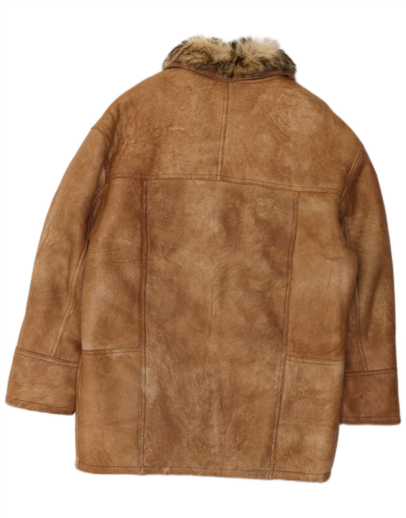 VINTAGE Mens Shearling Jacket UK 36 Small Brown Shearling