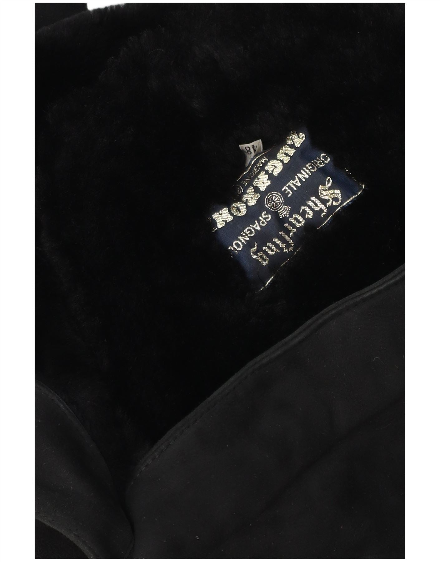 VINTAGE Mens Shearling Overcoat IT 48 Medium Black Shearling