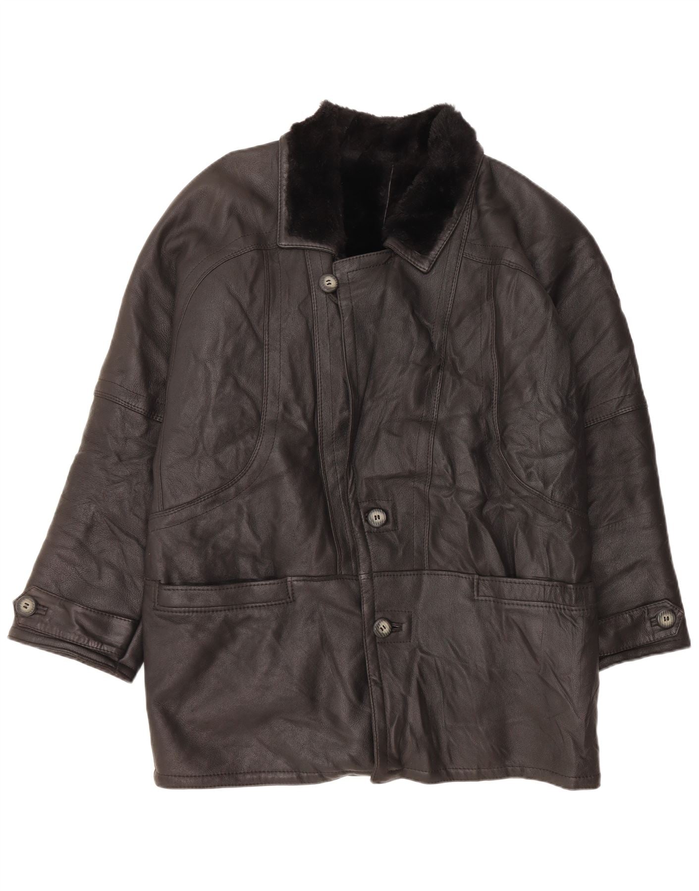 VINTAGE Mens Shearling Overcoat IT 52 XL Black Shearling