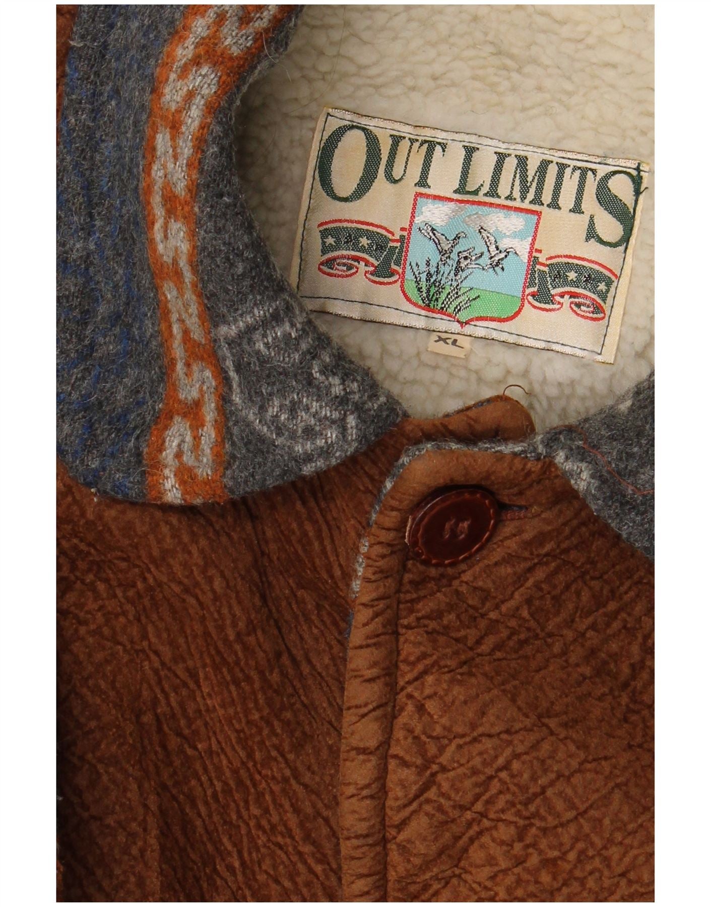 VINTAGE Mens Sherpa Jacket UK 42 XL Navy Blue Fair Isle
