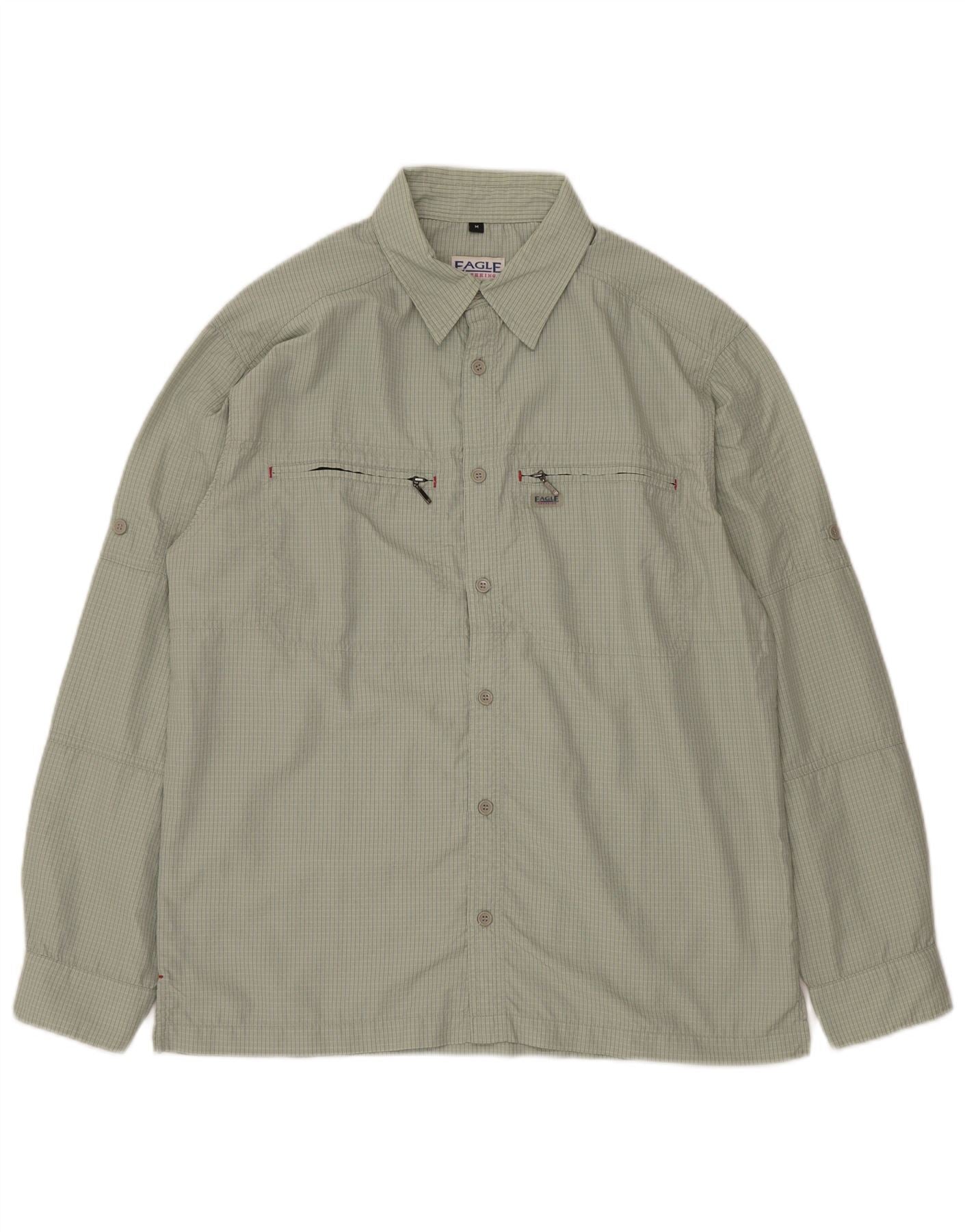 VINTAGE Mens Shirt Medium Green Gingham Polyamide