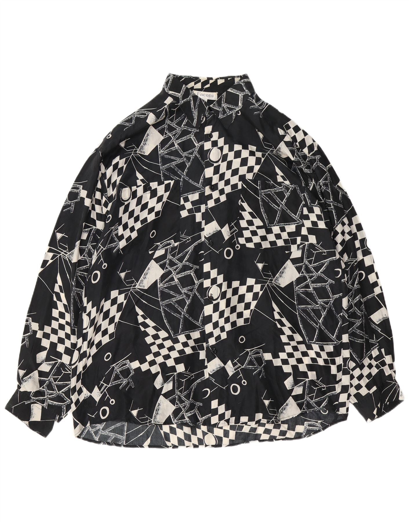 VINTAGE Mens Shirt XL Black Geometric Silk