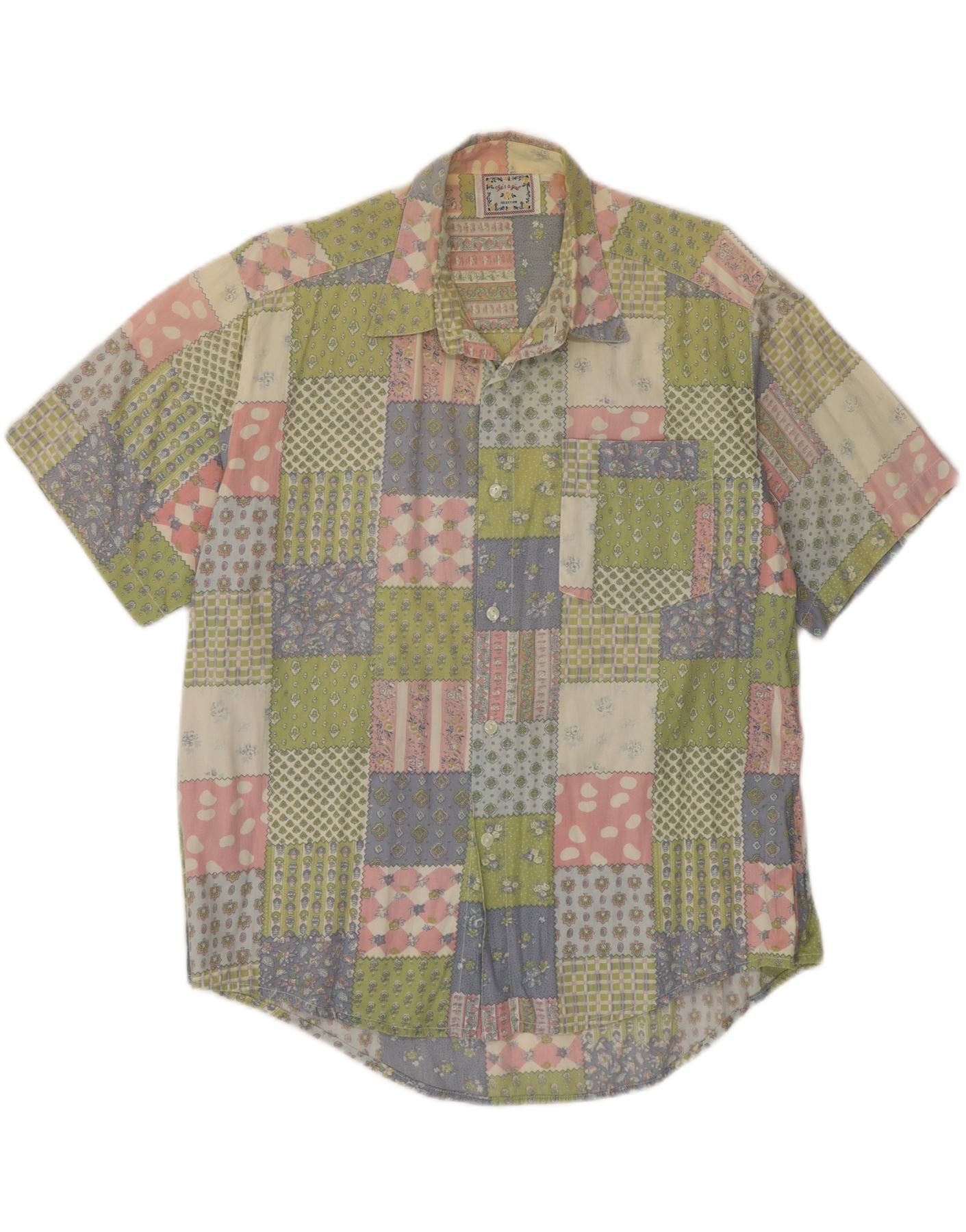 VINTAGE Mens Short Sleeve Shirt Medium Multicoloured Patchwork Cotton