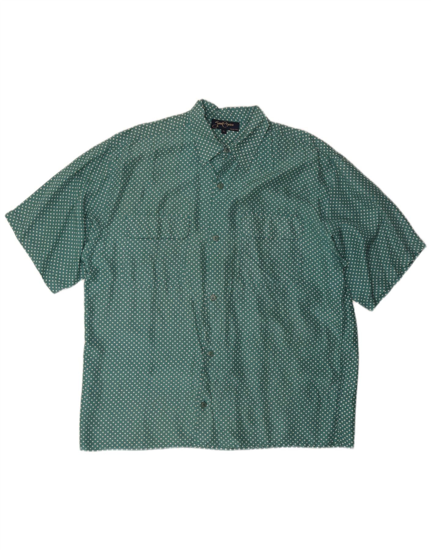 VINTAGE Mens Short Sleeve Shirt XL Green Spotted Silk