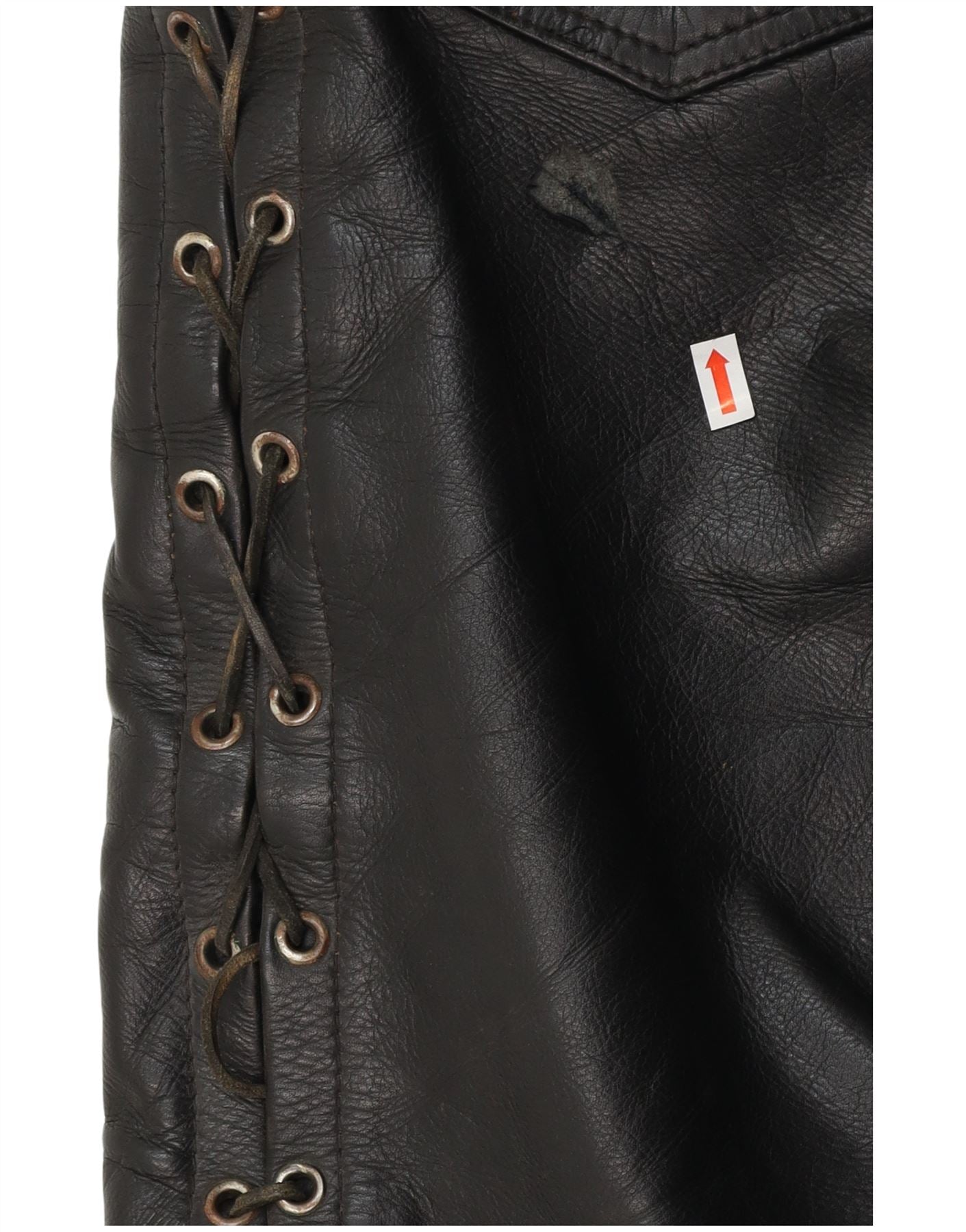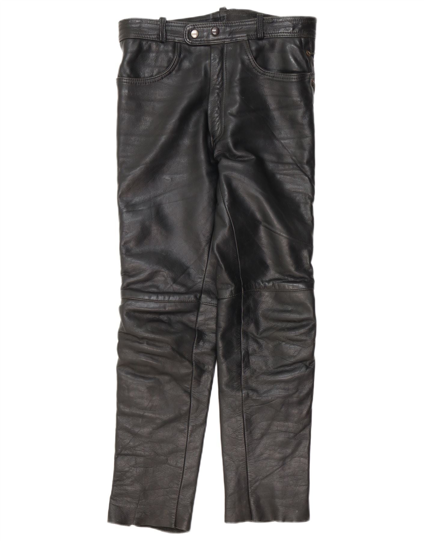 VINTAGE Mens Straight Leather Trousers W30 L30 Black