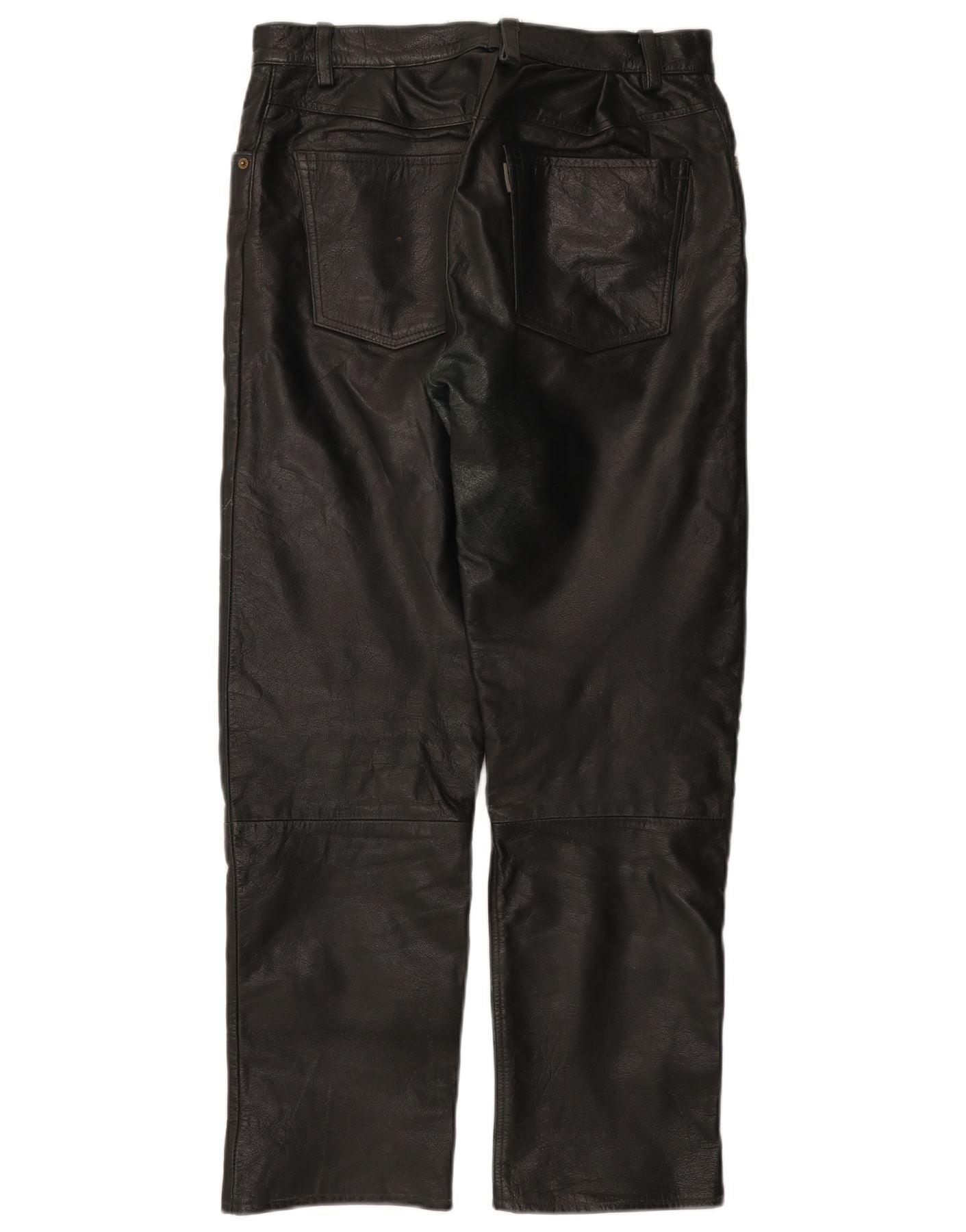 VINTAGE Mens Straight Leather Trousers W31 L30 Black
