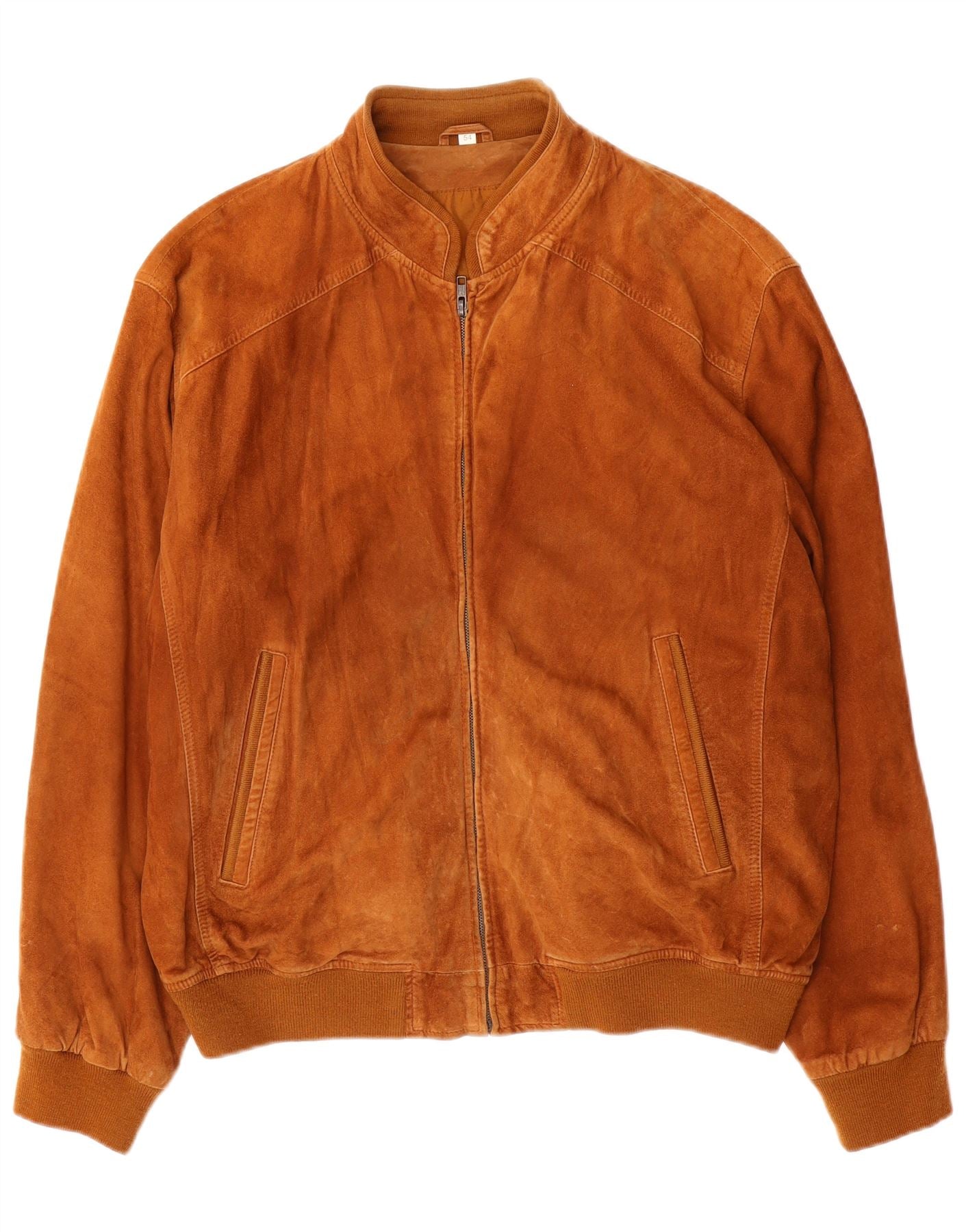VINTAGE Mens Suede Bomber Jacket IT 54 2XL Beige Leather