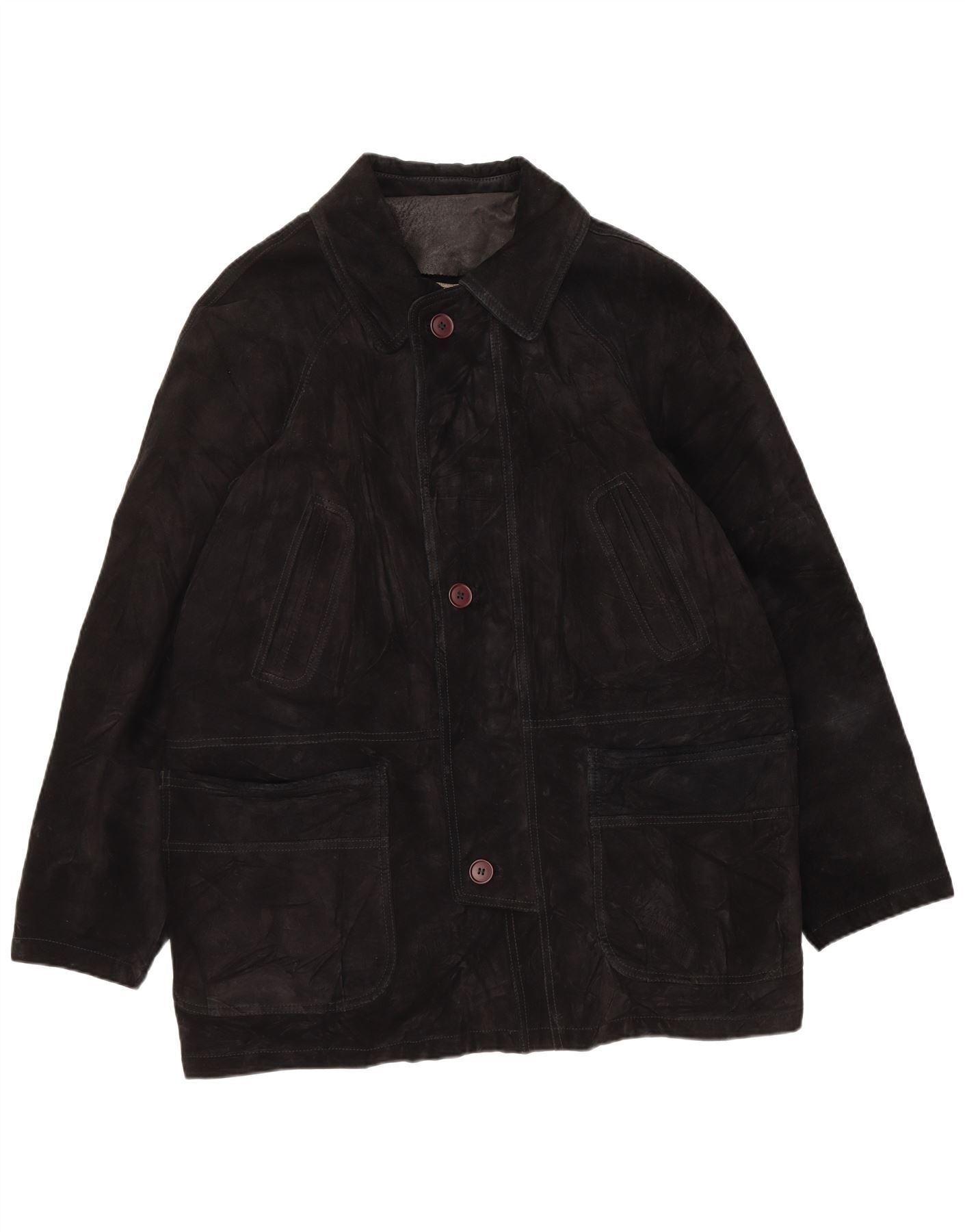 VINTAGE Mens Suede Jacket IT 50 Large Black Leather