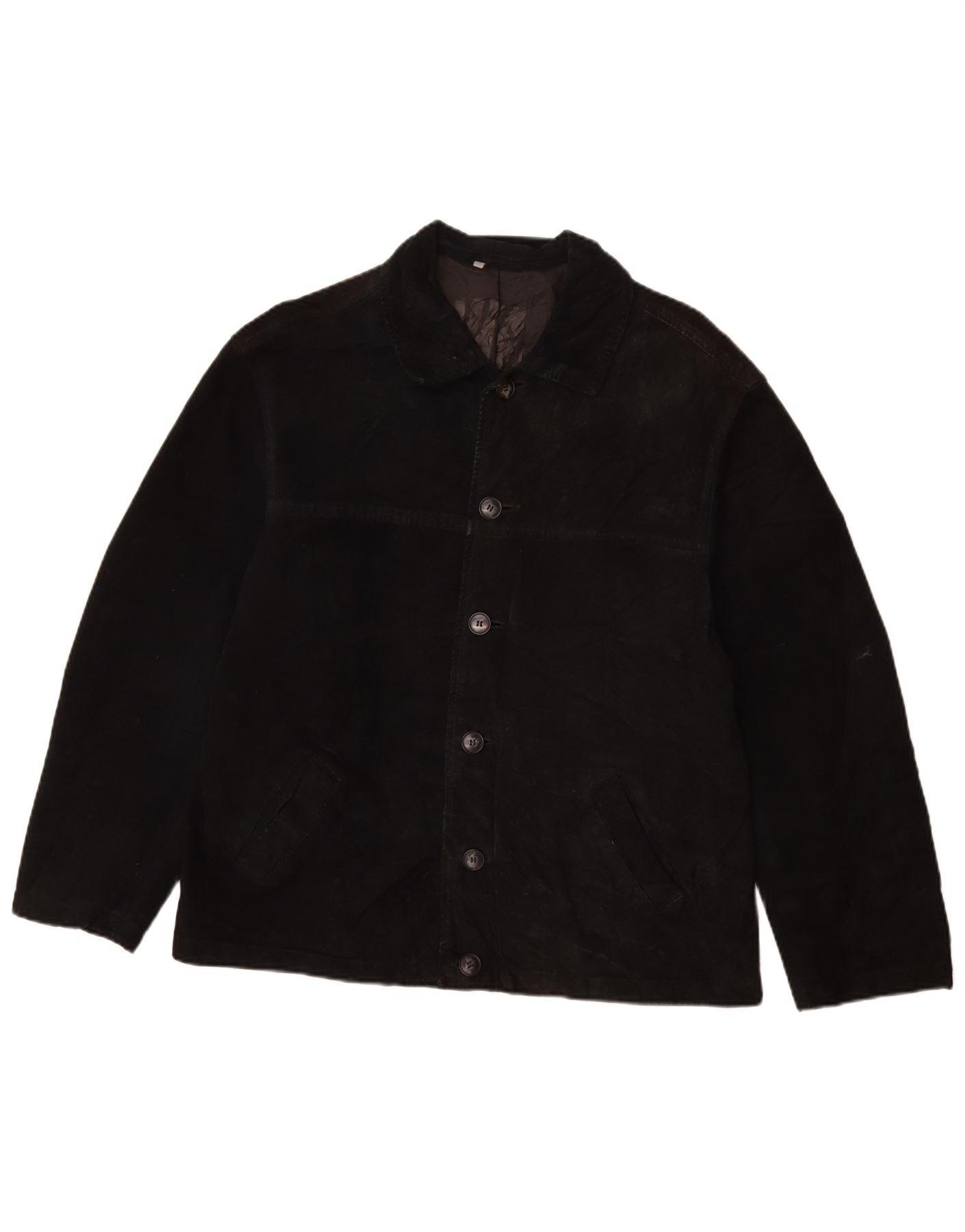 VINTAGE Mens Suede Jacket UK 40 Large Black
