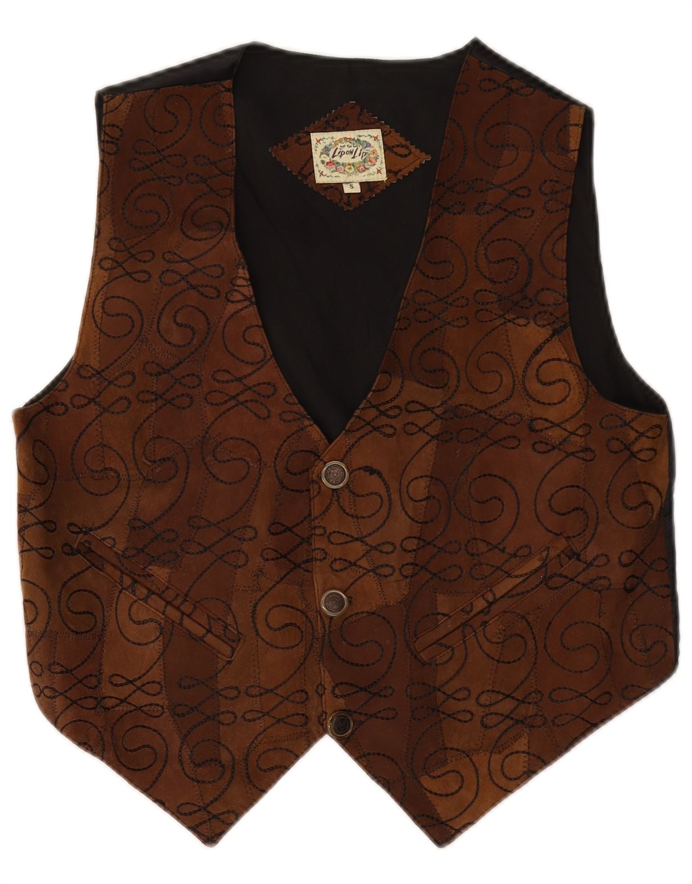 VINTAGE Mens Suede Waistcoat Small Brown Paisley Leather
