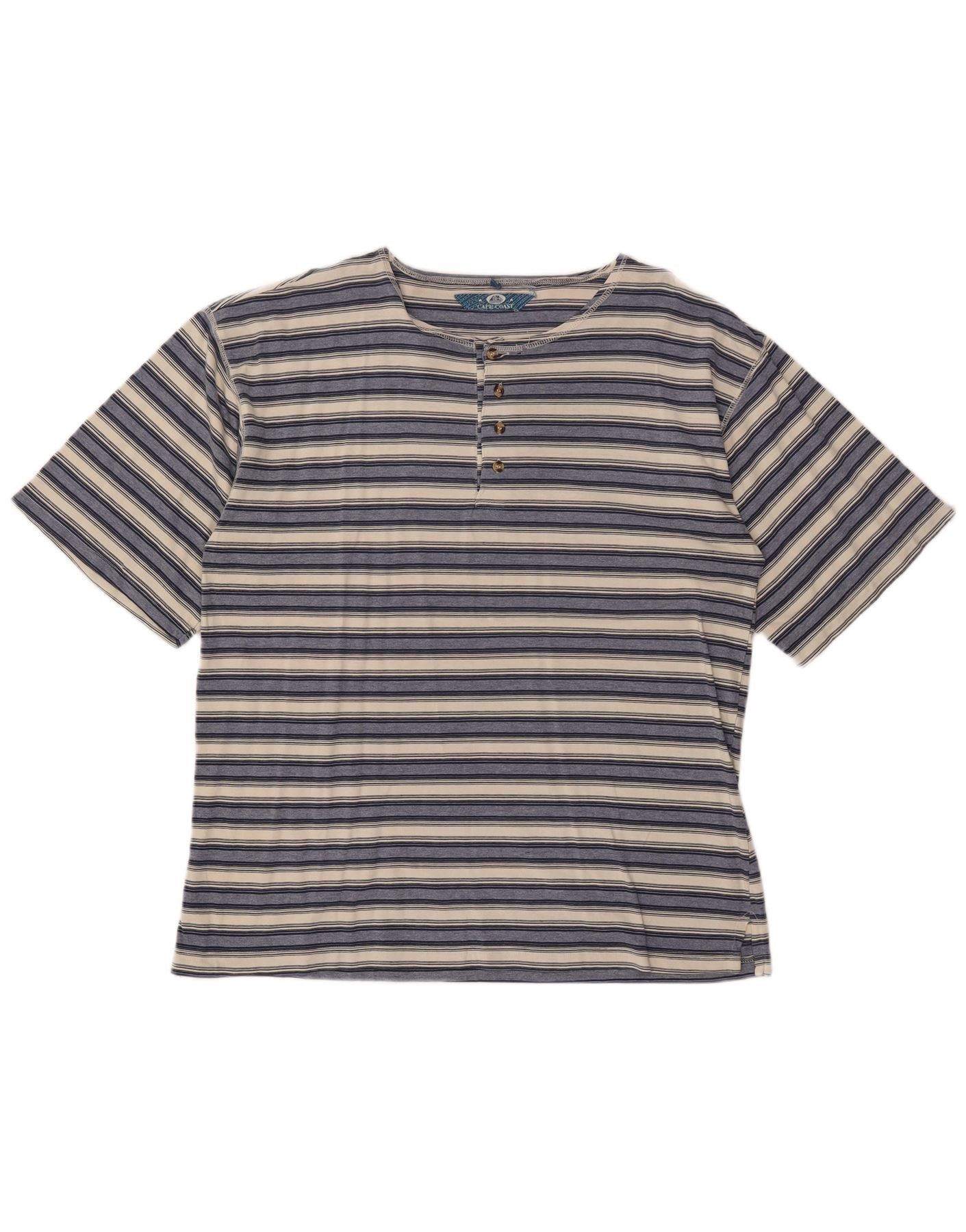 VINTAGE Mens T-Shirt Top XL Navy Blue Striped Cotton