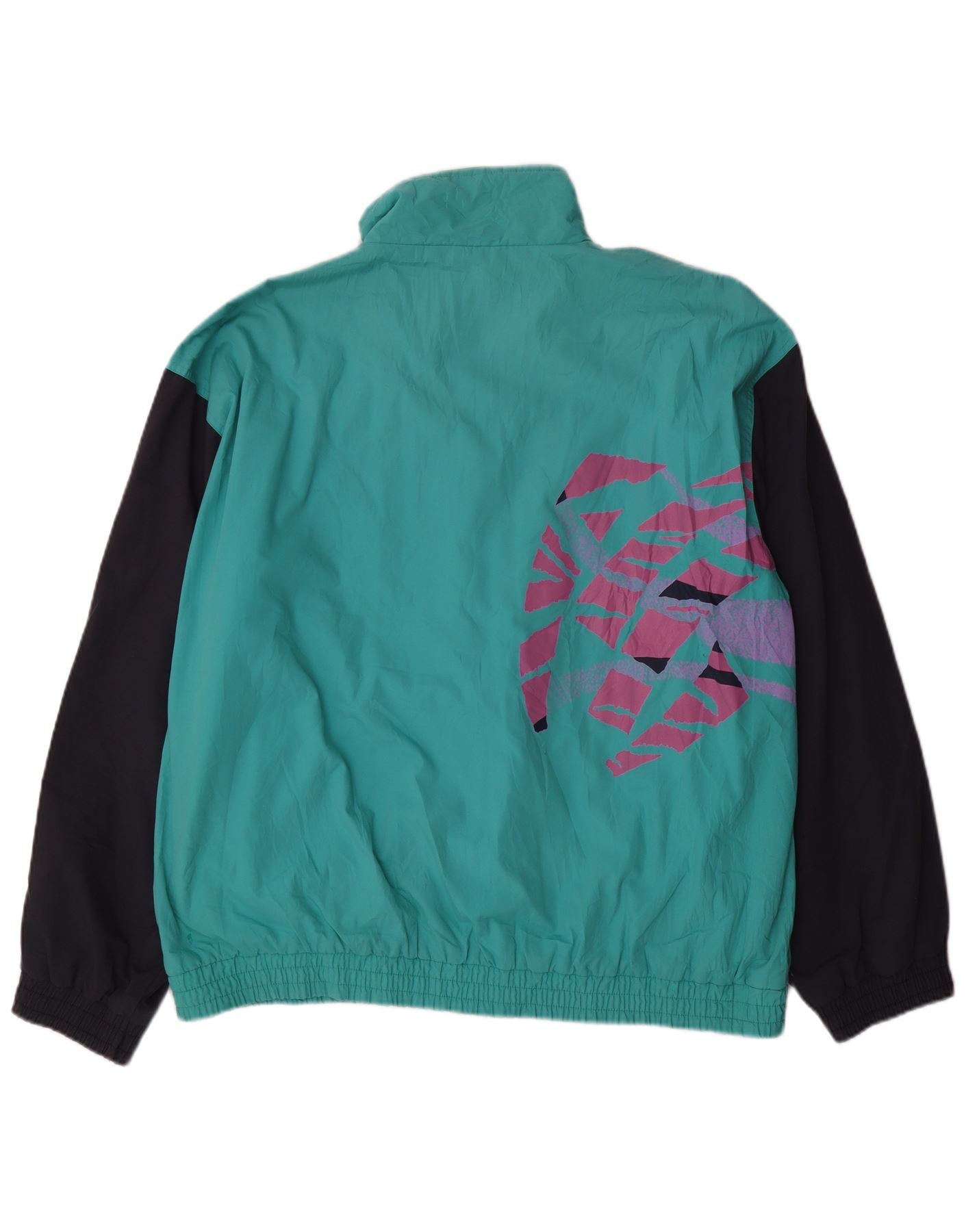 VINTAGE Mens Tracksuit Top Jacket XL Turquoise Colourblock Polyester