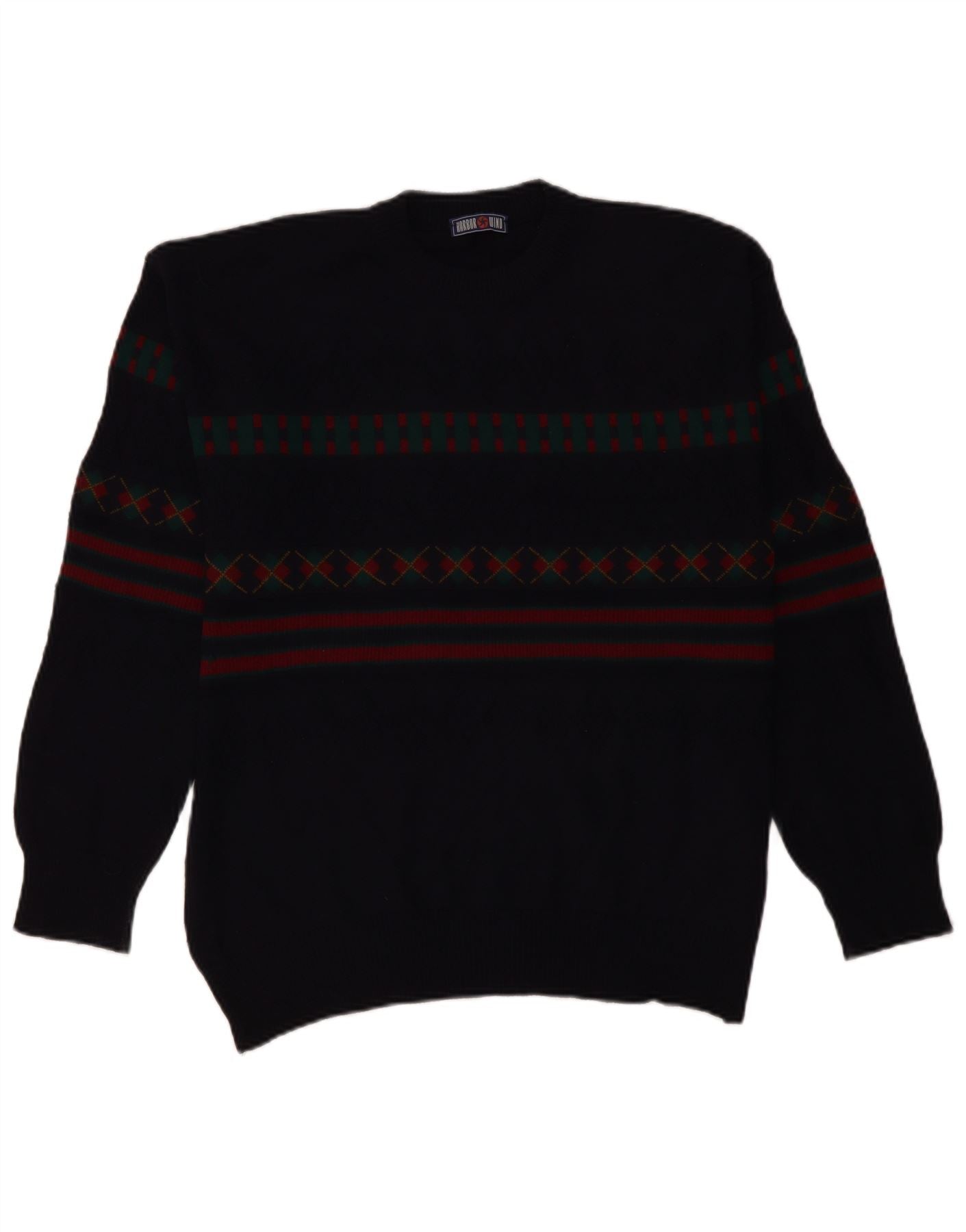 VINTAGE Mens Turtle Neck Jumper Sweater IT 50 Large Navy Blue Geometric