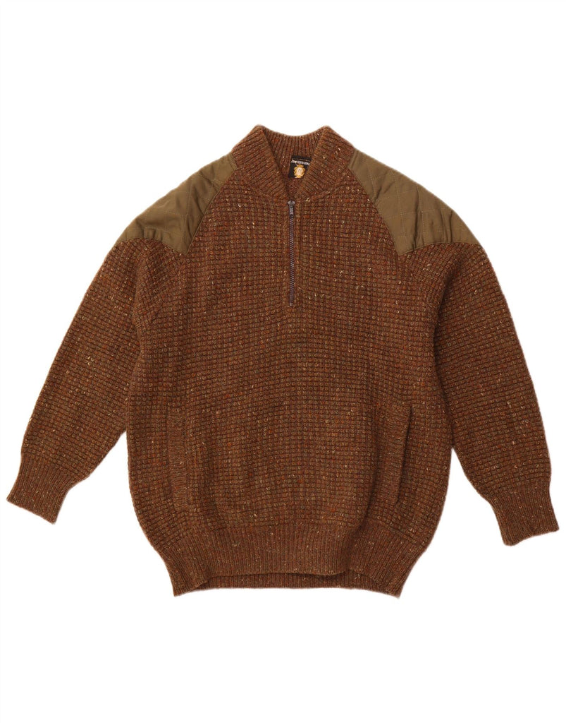VINTAGE Mens Turtle Neck Jumper Sweater IT 52 Large Brown Flecked Wool