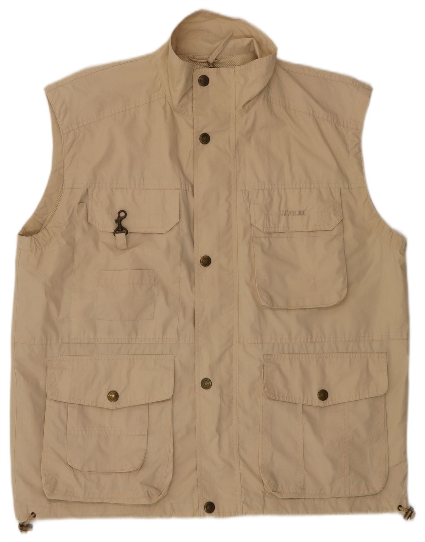 VINTAGE Mens Utility Gilet UK 40 Large Beige Polyester