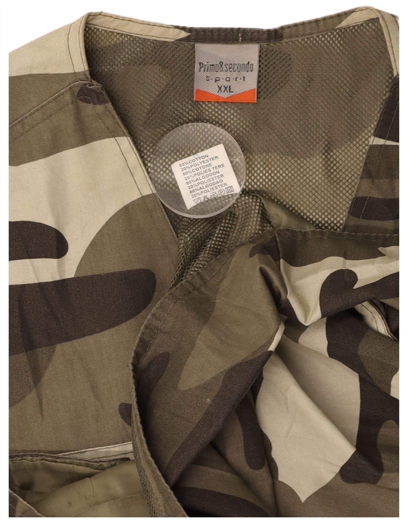 VINTAGE Mens Utility Gilet UK 44 2XL Khaki Camouflage Cotton