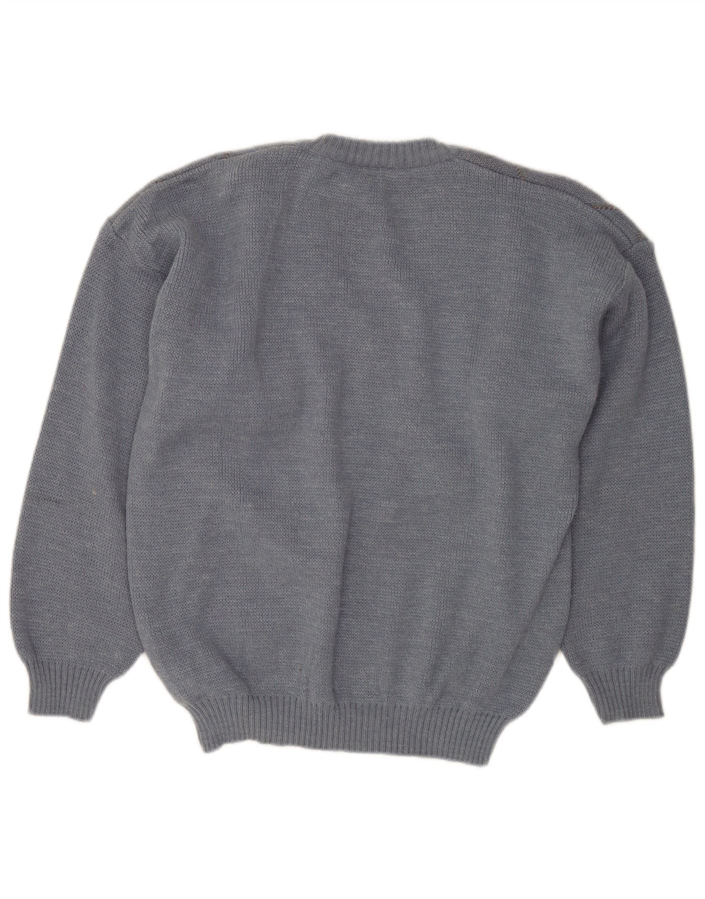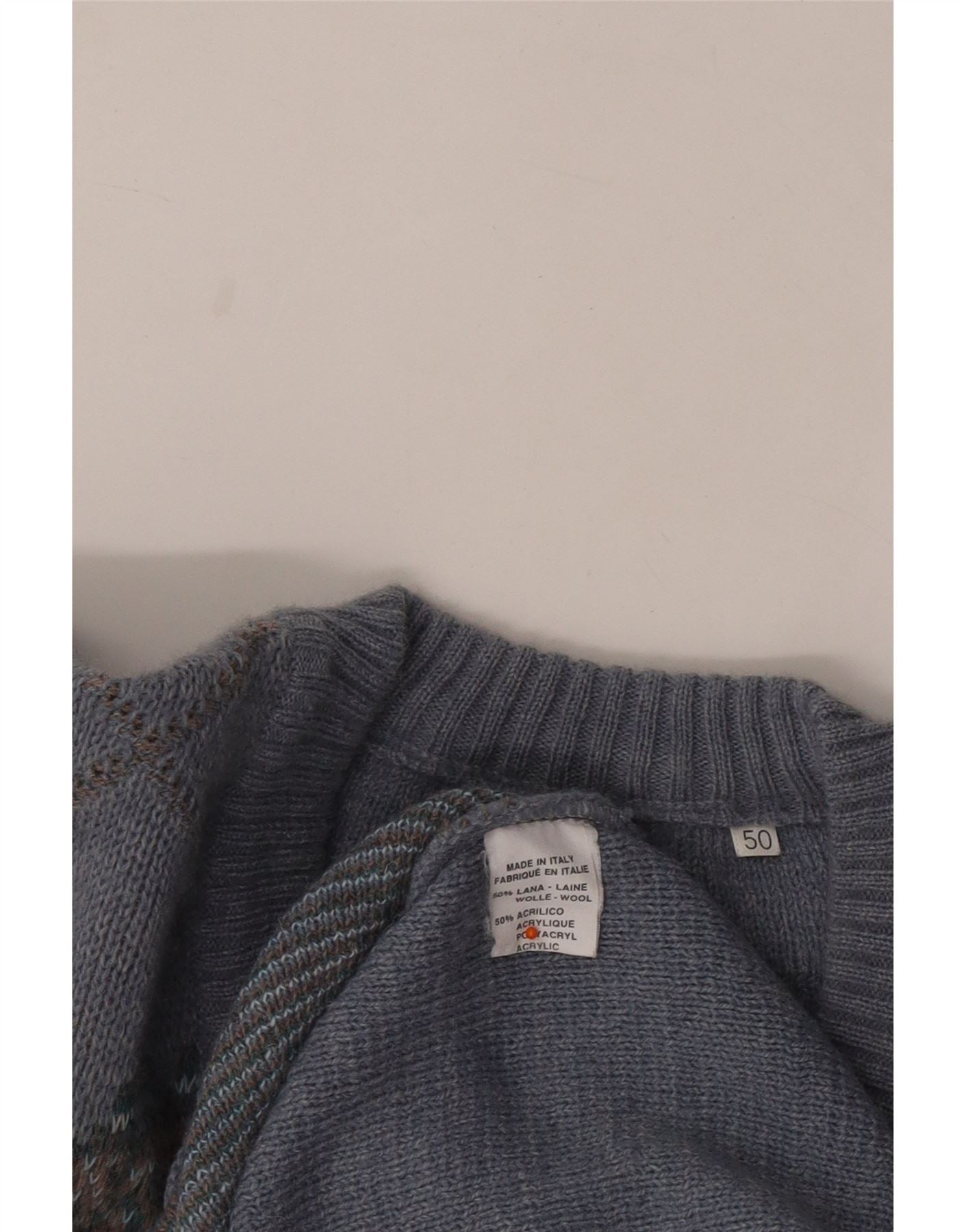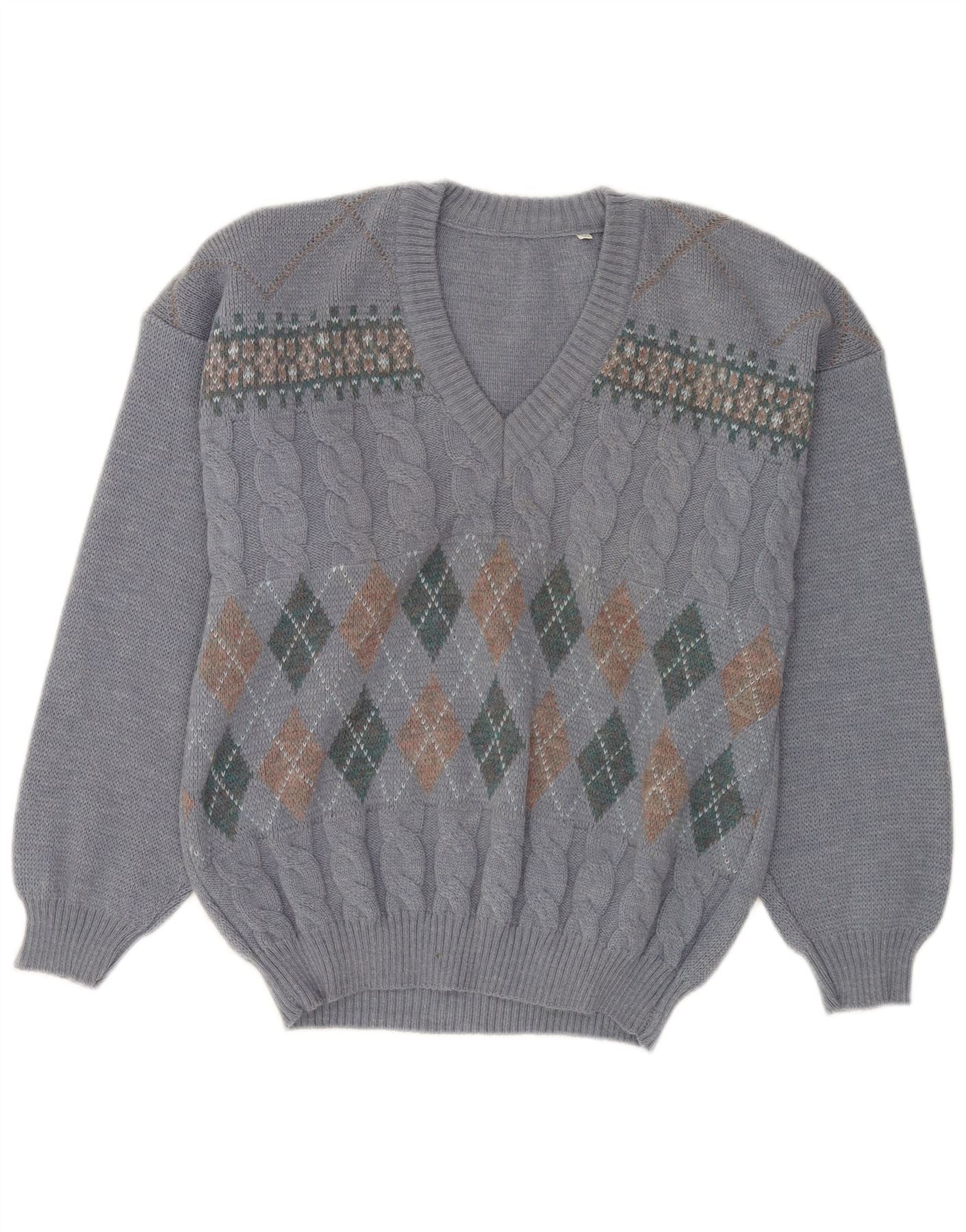 VINTAGE Mens V-Neck Jumper Sweater IT 50 Medium Blue Argyle/Diamond Wool