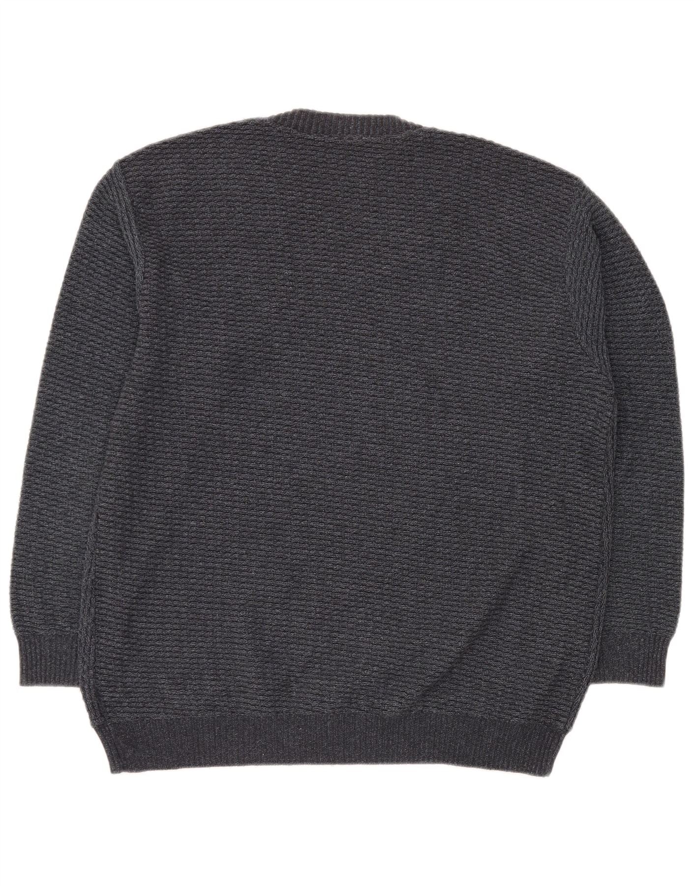 VINTAGE Mens V-Neck Jumper Sweater IT 50 Medium Grey Geometric