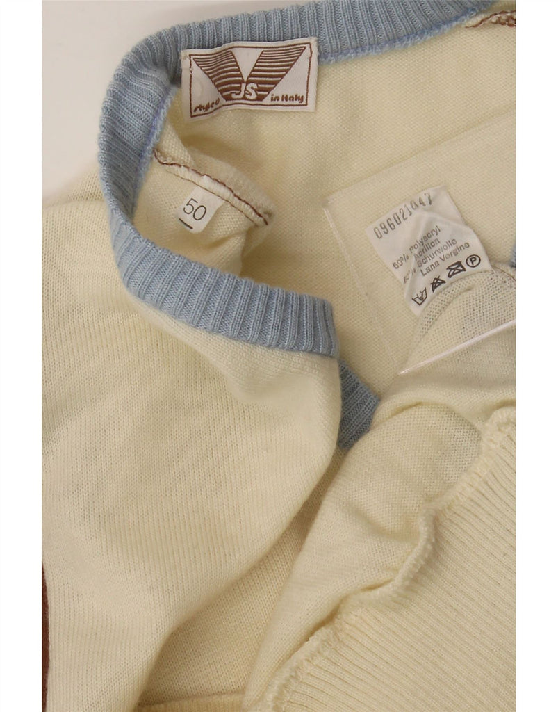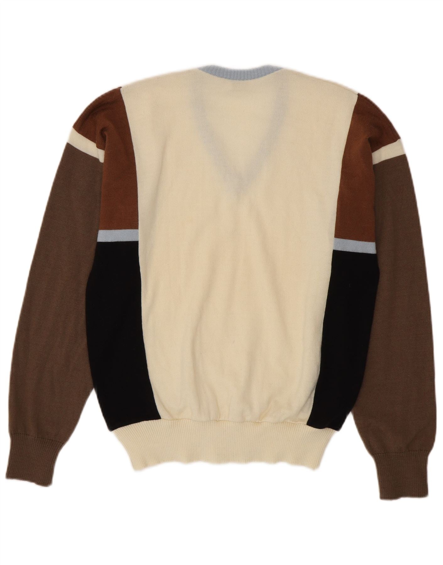VINTAGE Mens V-Neck Jumper Sweater IT 50 Medium Multicoloured Colourblock