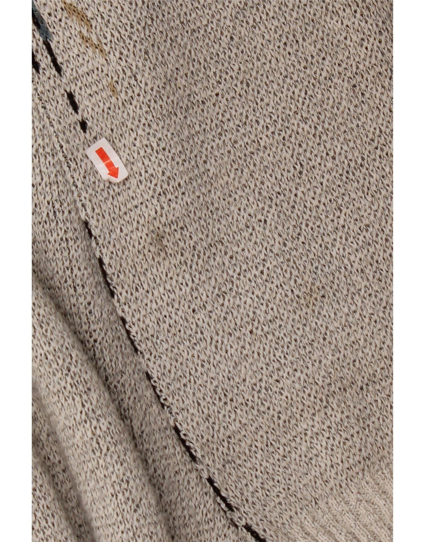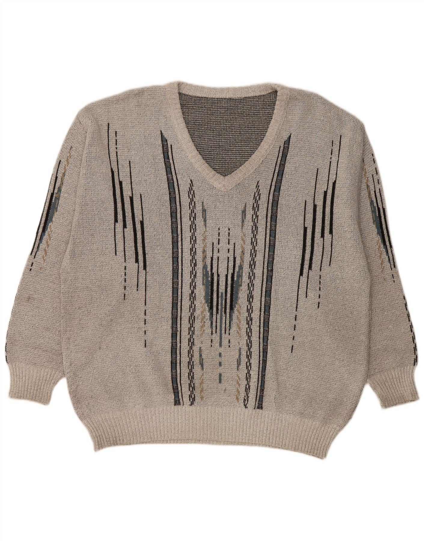 VINTAGE Mens V-Neck Jumper Sweater Large Grey Geometric