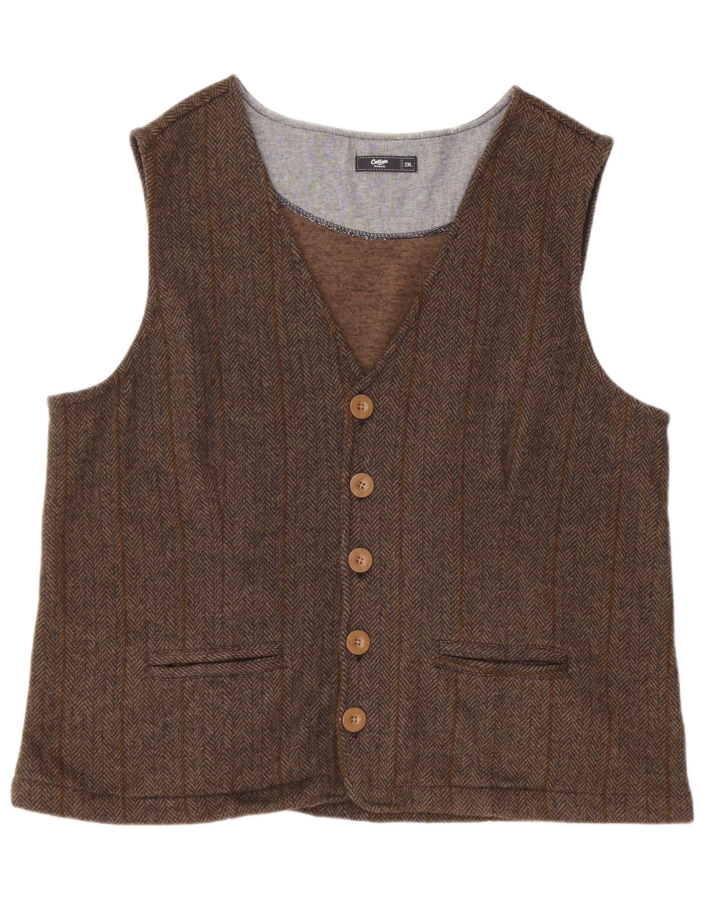 Vintage Mens Waistcoat 2XL Brown Striped Polyester