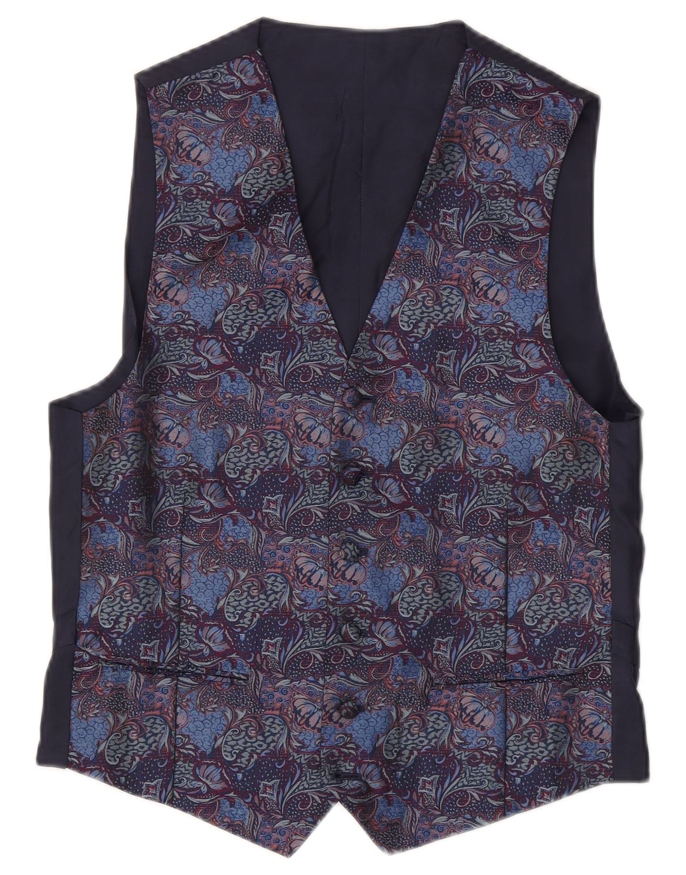 VINTAGE Mens Waistcoat Small Navy Blue Paisley