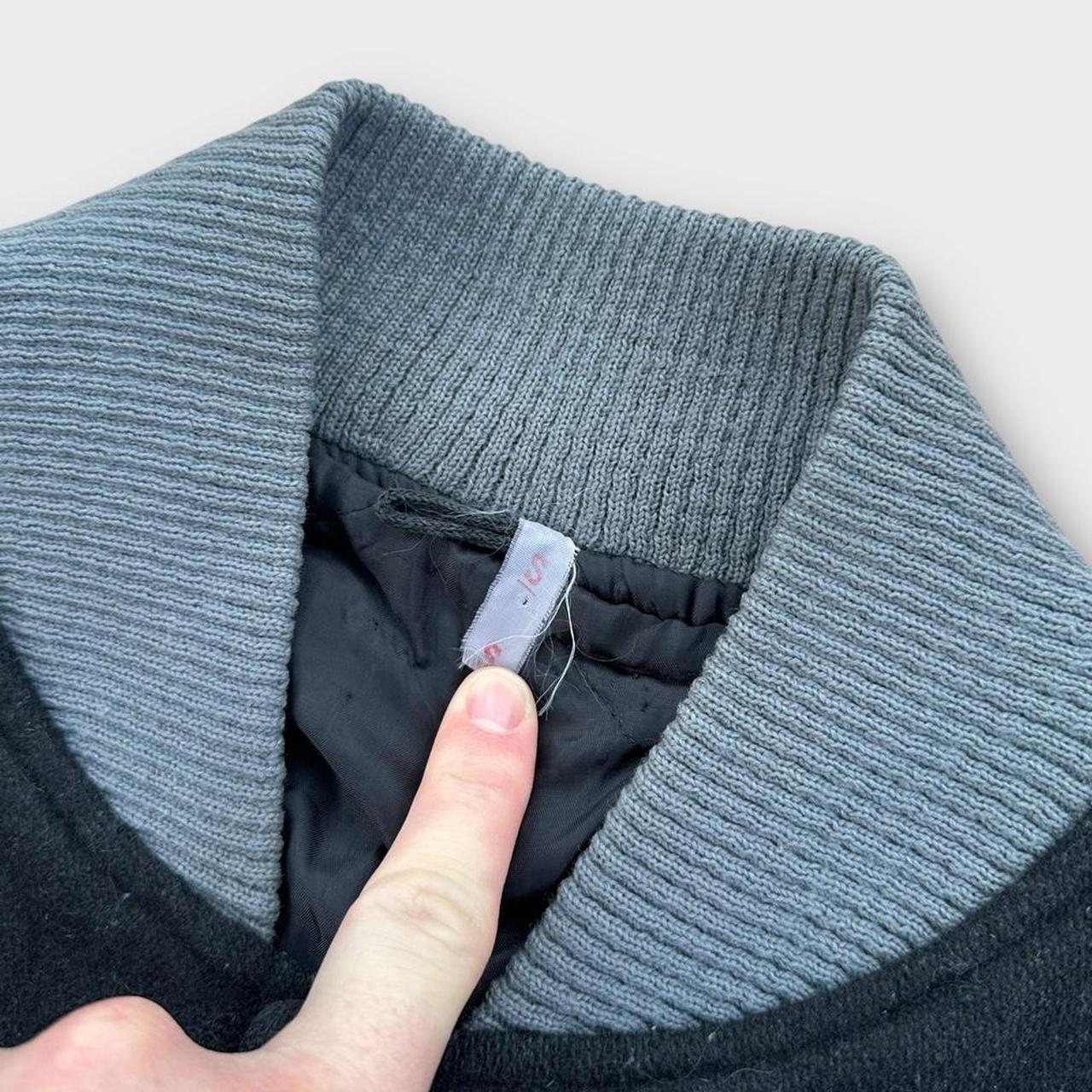Vintage early 2000’s Motocross “JT MX Planet” wool button up varsity jacket in black with embroidered logo on the back