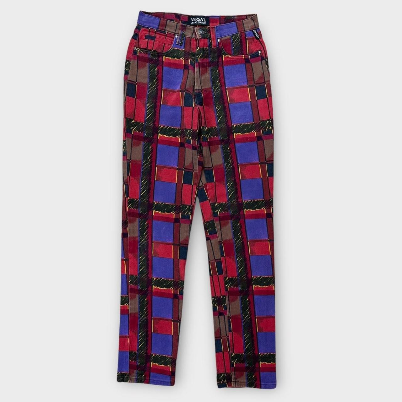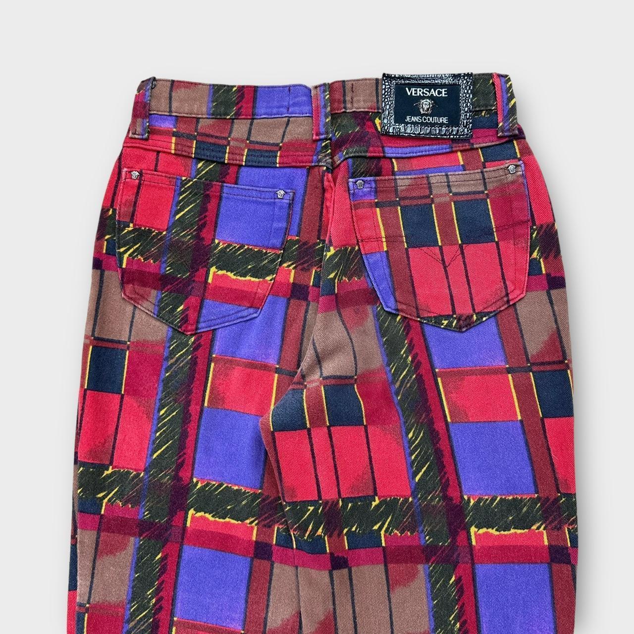 90’s all over print jeans with Versace patch on the back and Medusa head detailings throughout