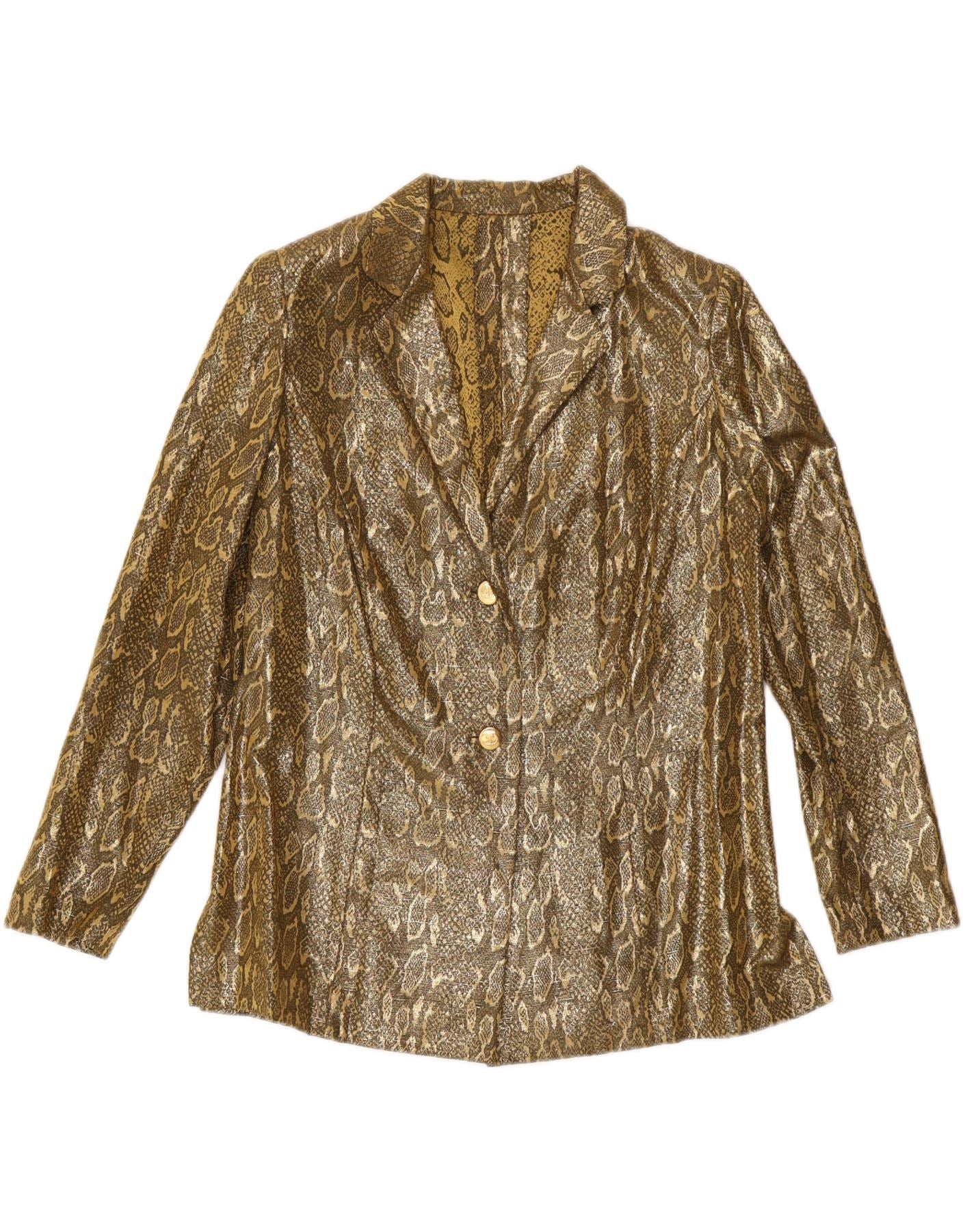 VINTAGE Womens 2 Button Blazer Jacket UK 14 Medium Gold Animal Print