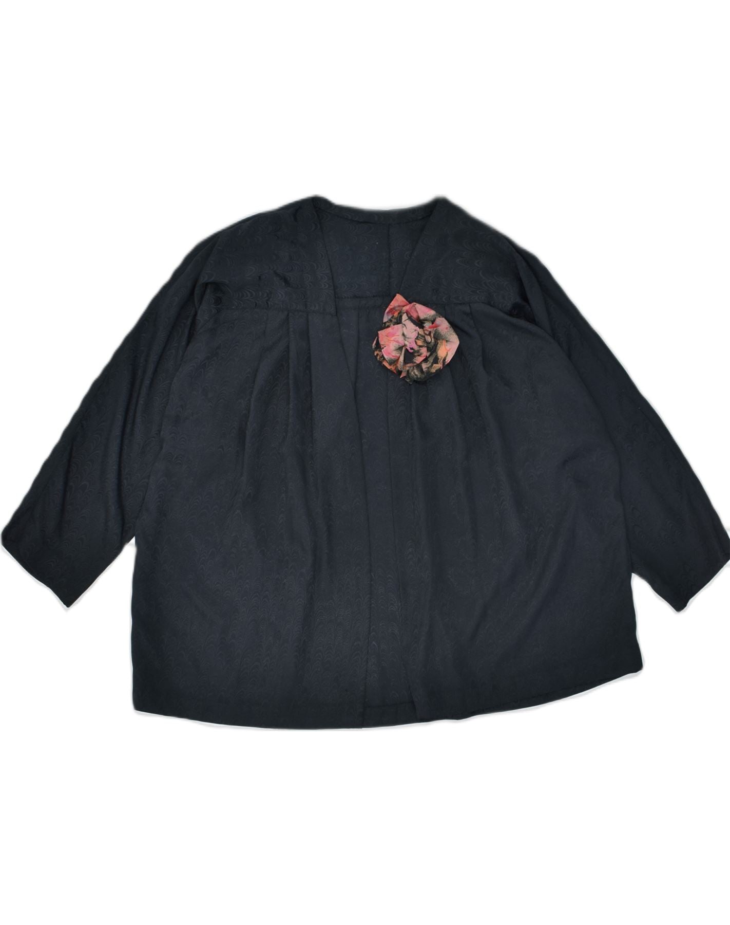 VINTAGE Womens 3/4 Sleeve Cardigan Top UK 24 3XL Black Floral