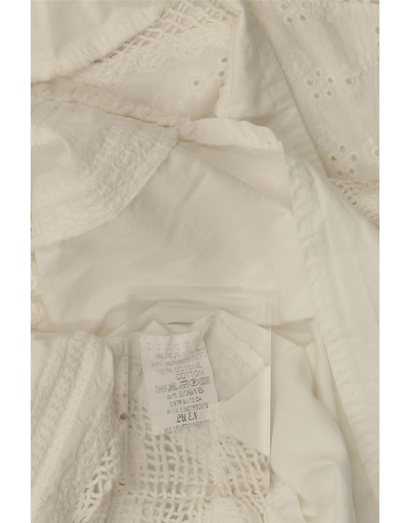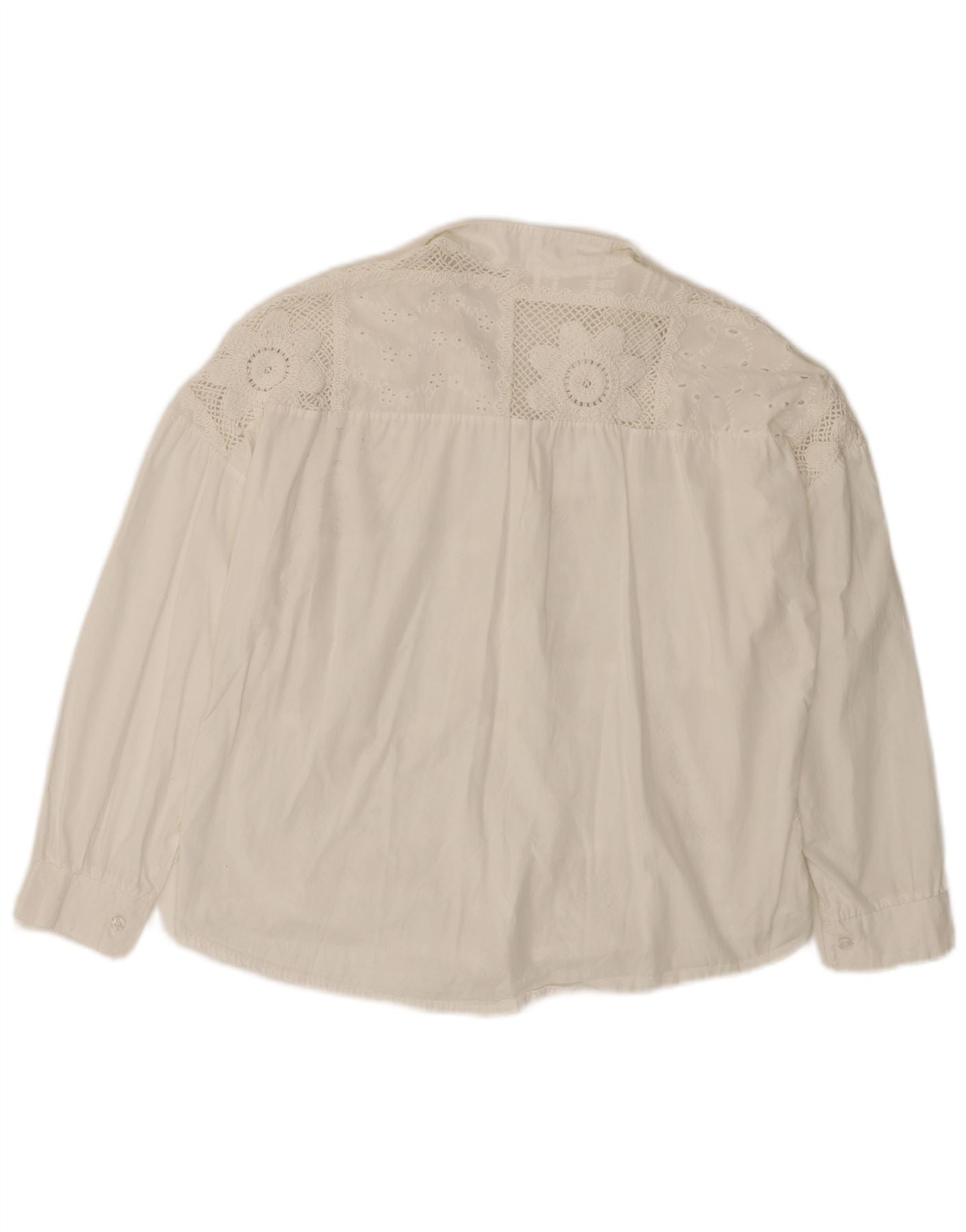 VINTAGE Womens 3/4 Sleeve Shirt Blouse UK 14 Medium White Floral Cotton