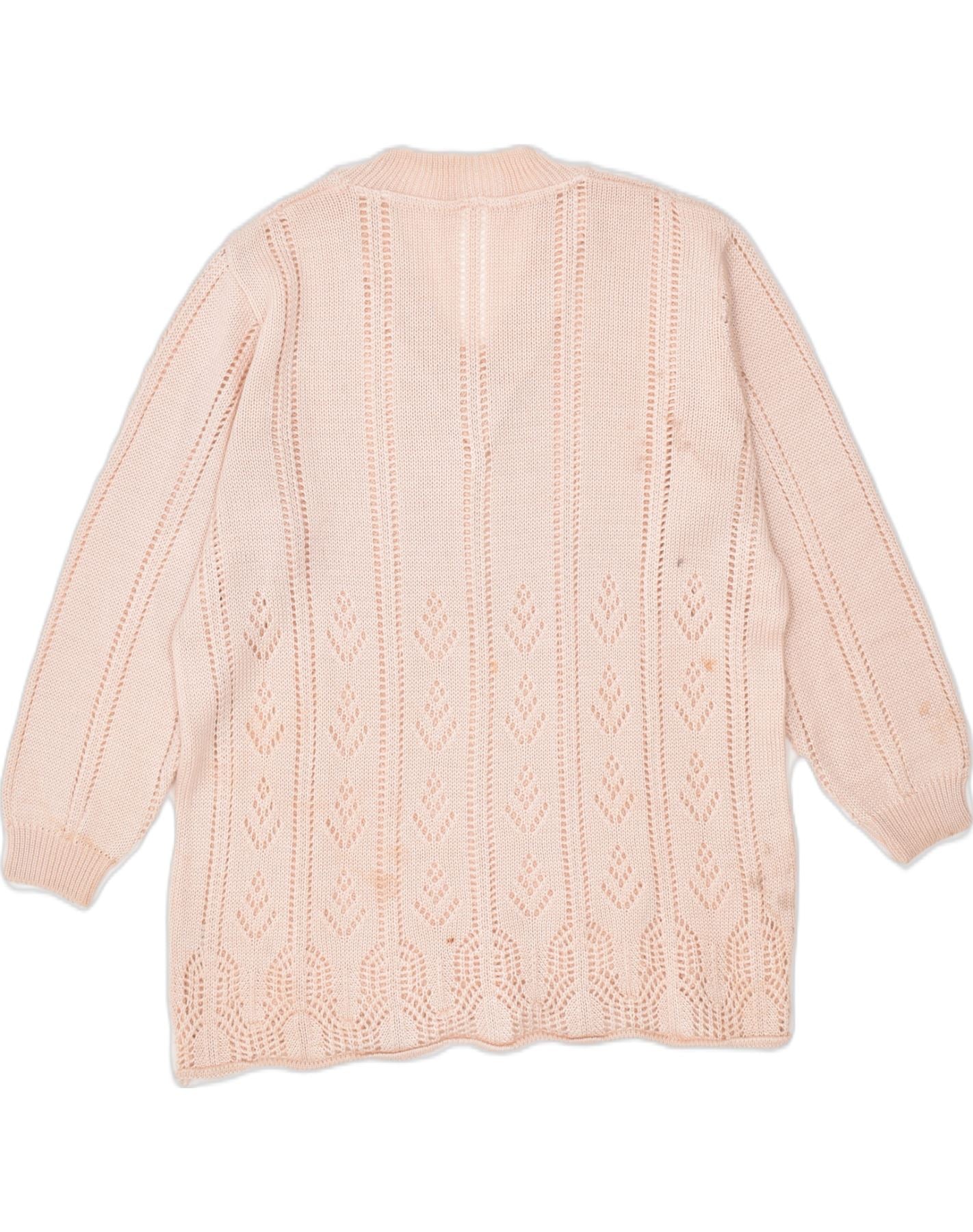 VINTAGE Womens 3/4 Sleeve V-Neck Jumper Sweater UK 14 Large Pink Cotton
