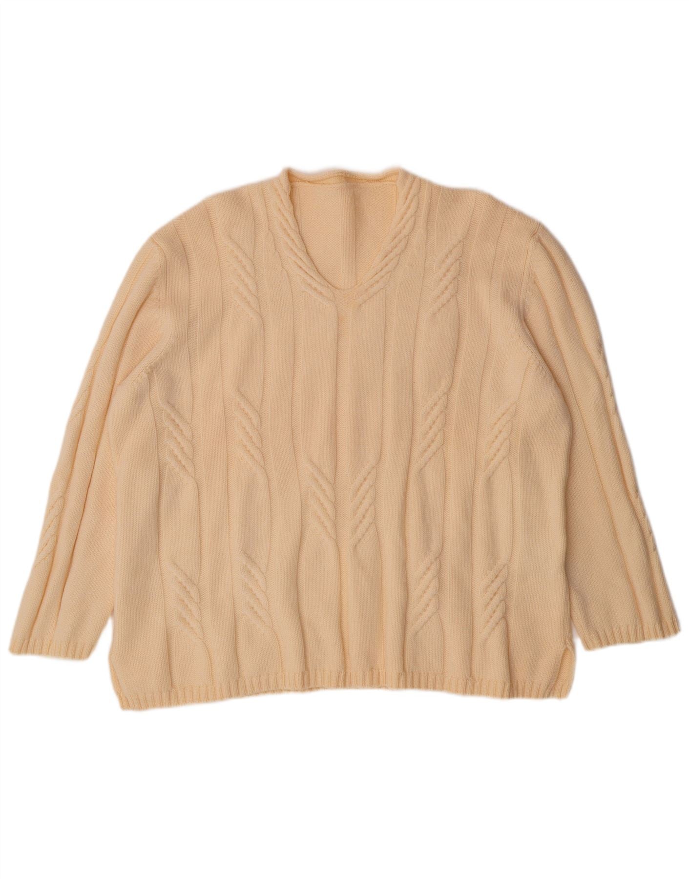 VINTAGE Womens 3/4 Sleeve V-Neck Jumper Sweater UK 18 XL Off White