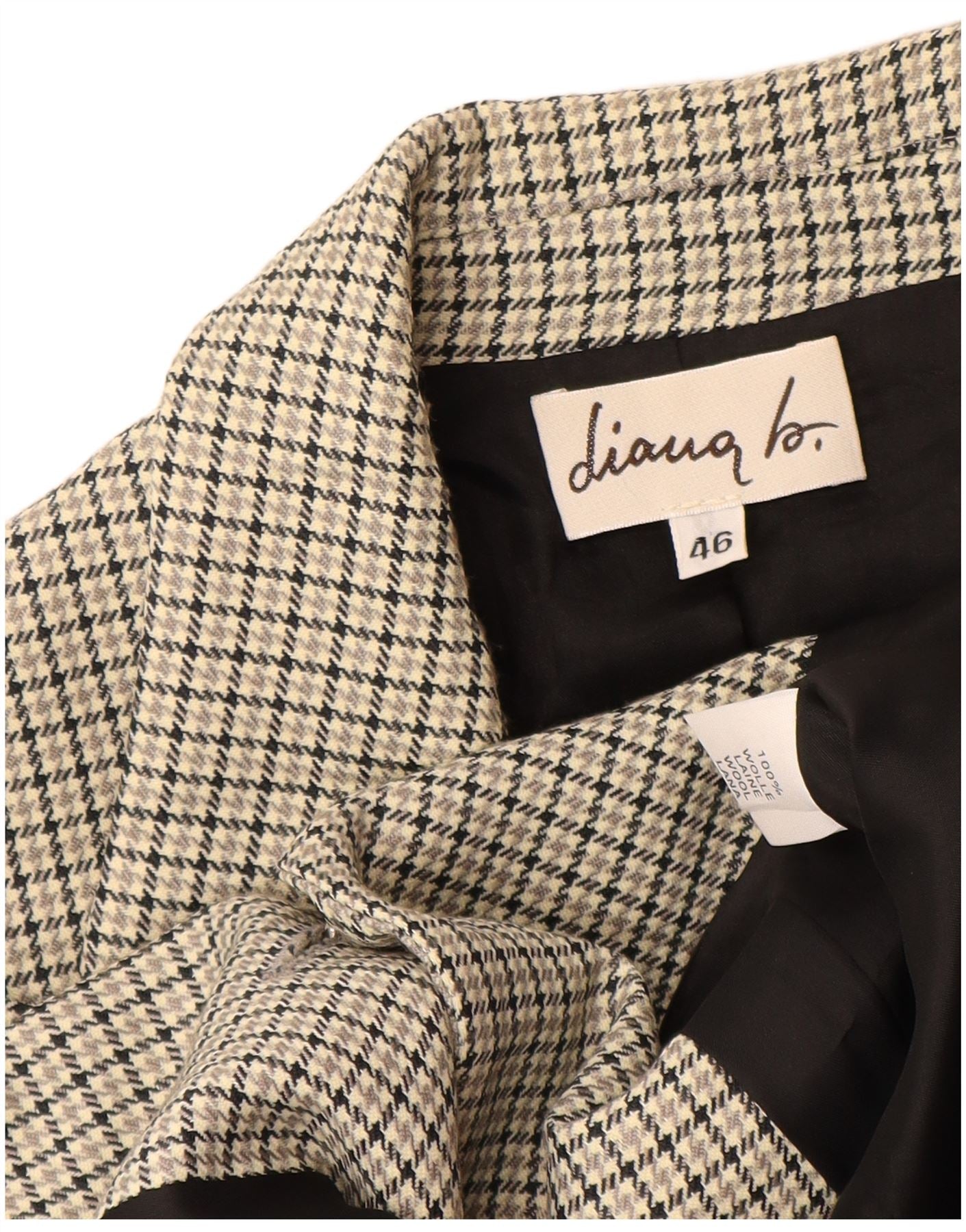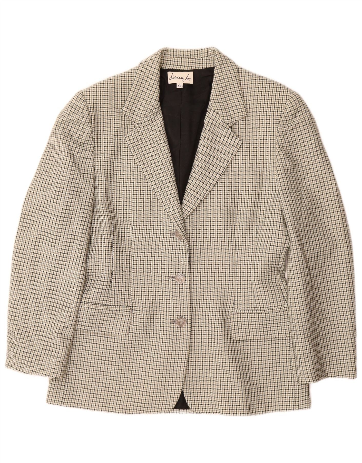 VINTAGE Womens 3 Button Blazer Jacket IT 46 Large Grey Houndstooth Wool