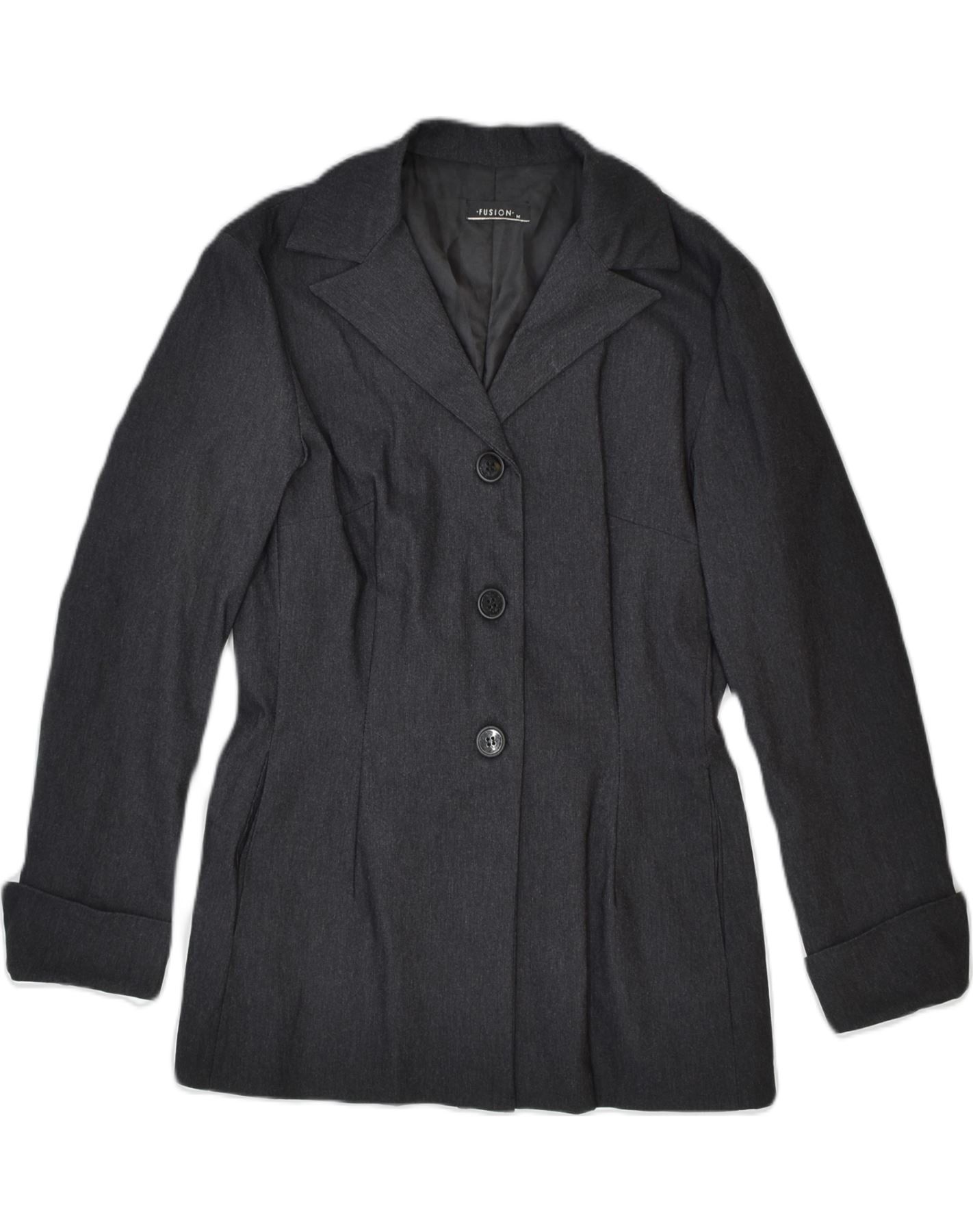 VINTAGE Womens 3 Button Blazer Jacket UK 12 Medium Black Polyamide