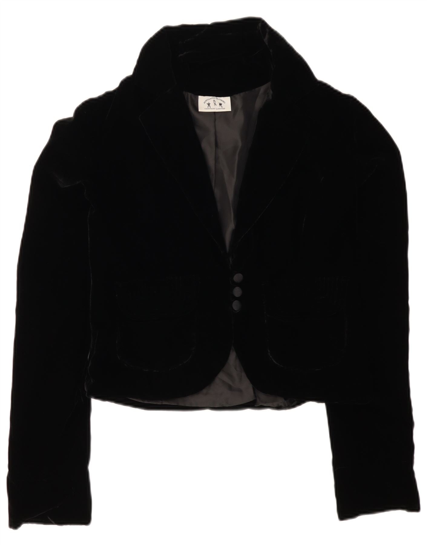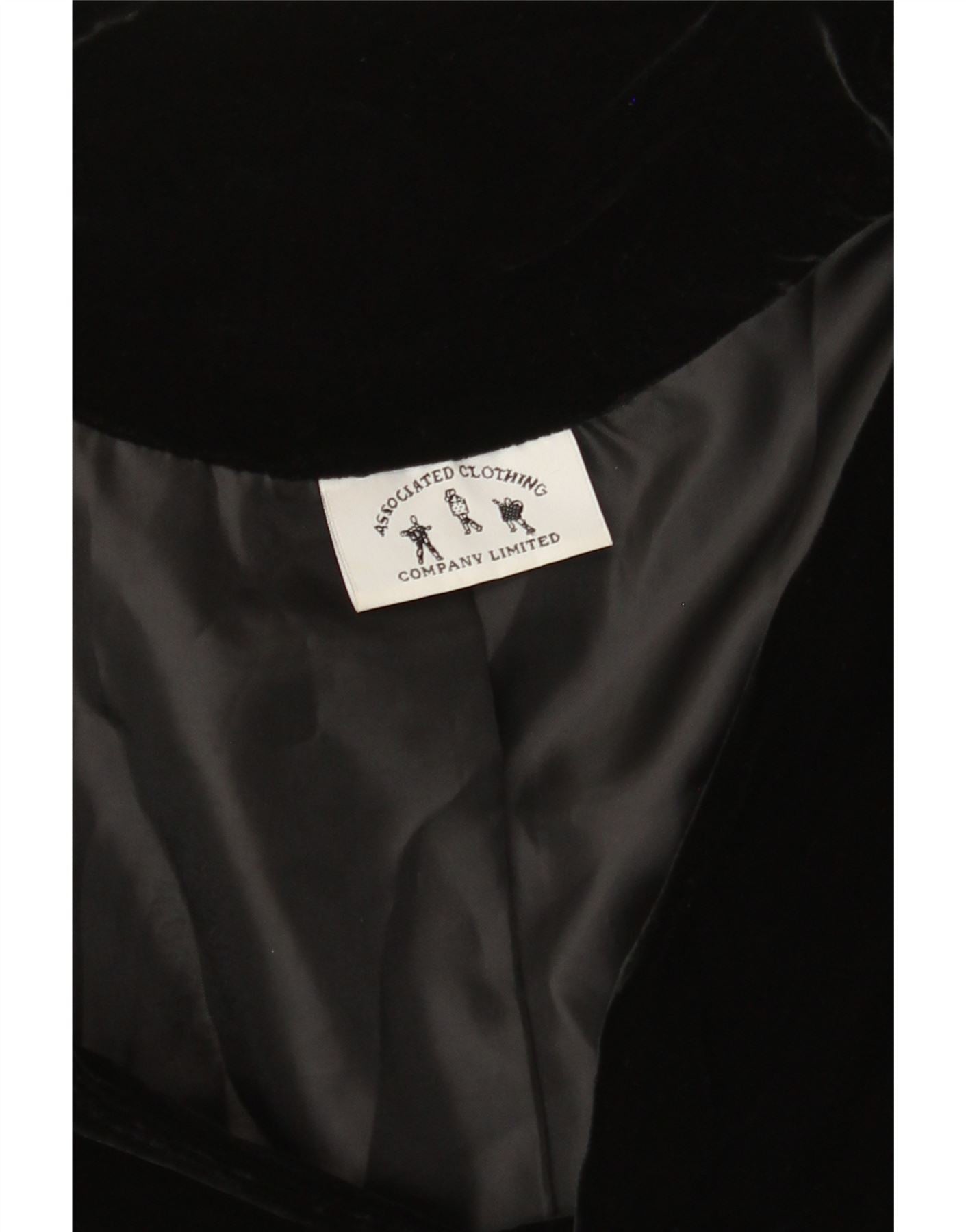 VINTAGE Womens 3 Button Velvet Blazer Jacket UK 12 Medium Black