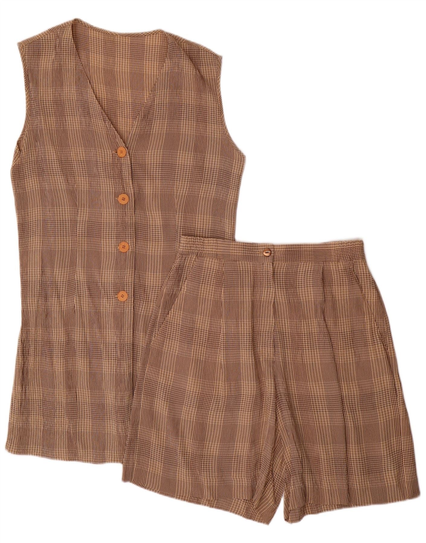 Vintage Womens Vest Tank Top UK 8 Small Brown Colourblock