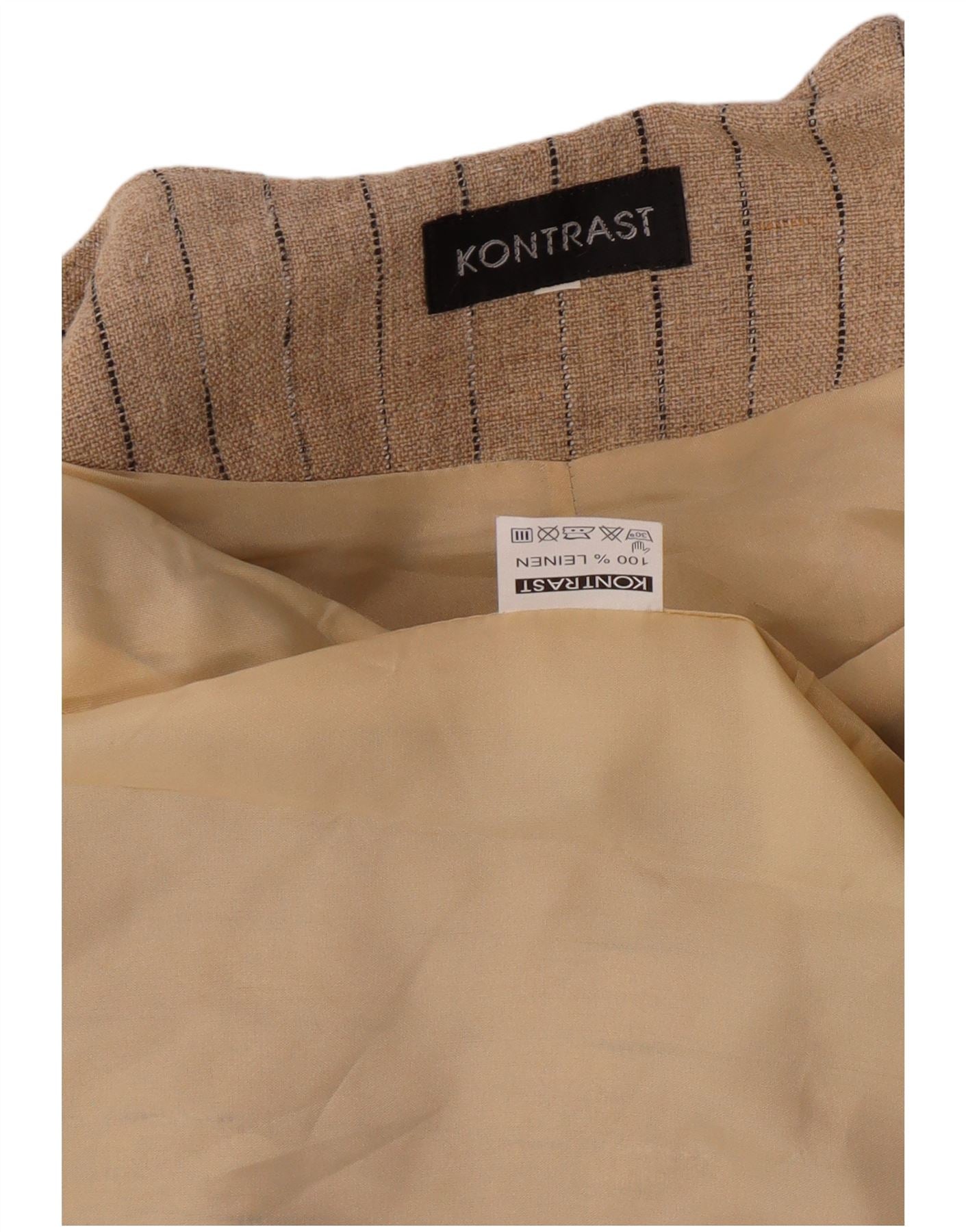 VINTAGE Womens 4 Button Blazer Jacket UK 14 Medium Beige Striped Linen